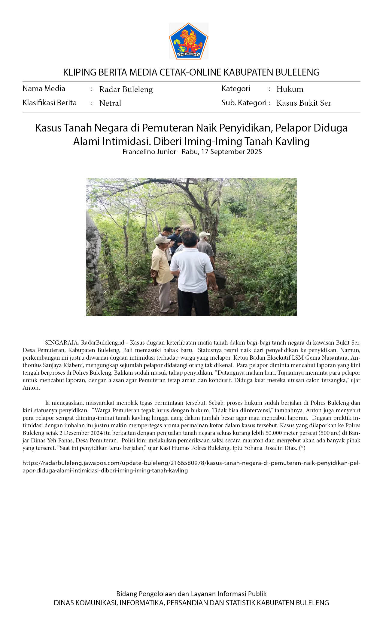 KASUS TANAH NEGARA DI PEMUTERAN NAIK PENYIDIKAN, PELAPOR DIDUGA ALAMI INTIMIDASI. DIBERI IMING-IMING TANAH KAVLING