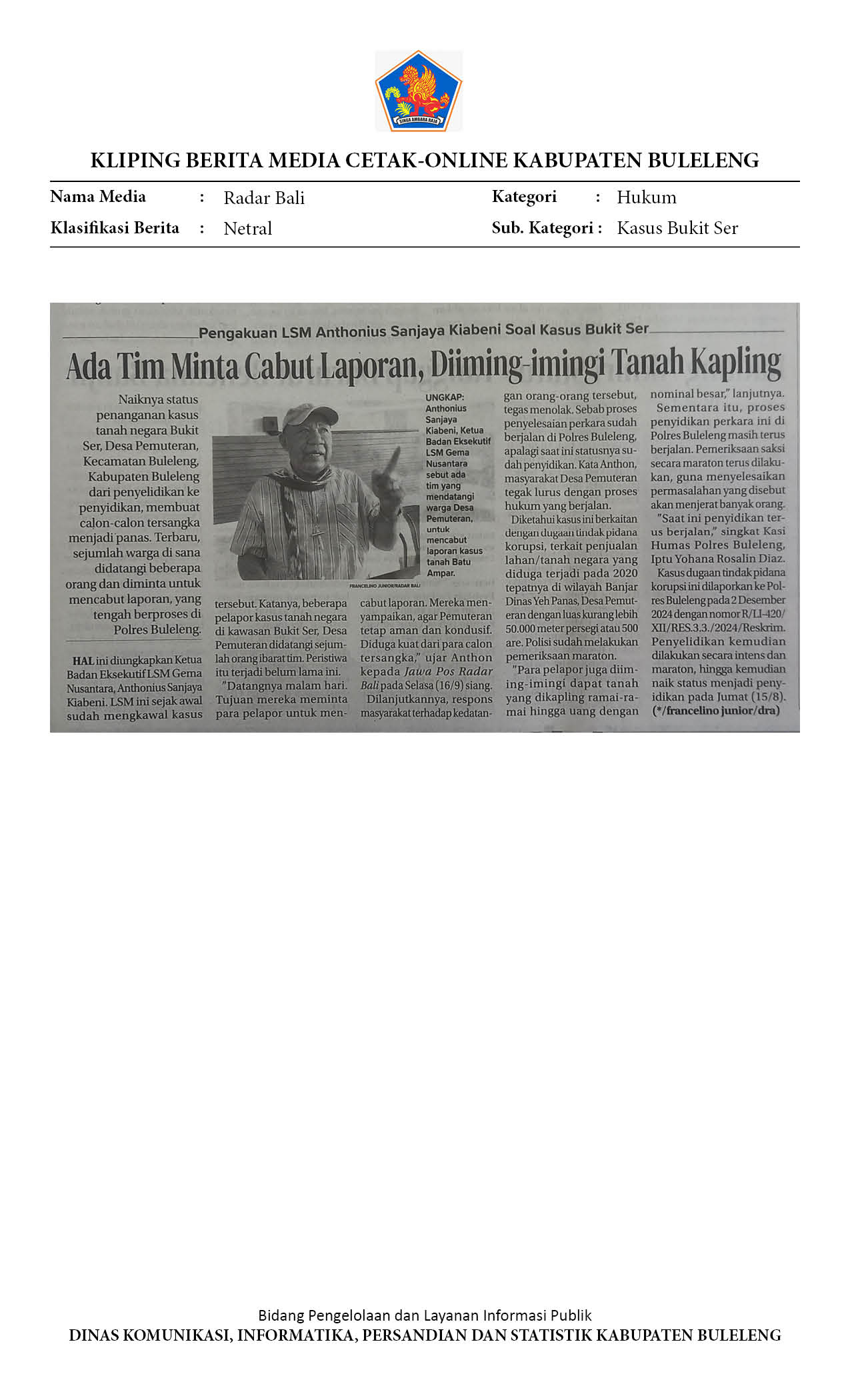 LSM ANTHONIUS SANJAYA KIABENI SOAL KASUS BUKIT SER