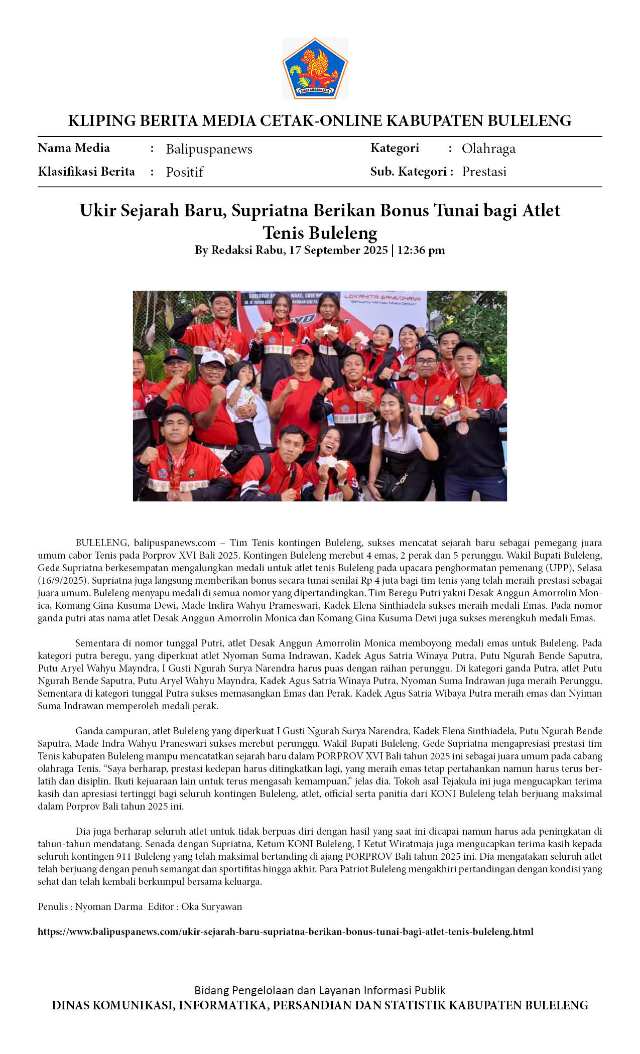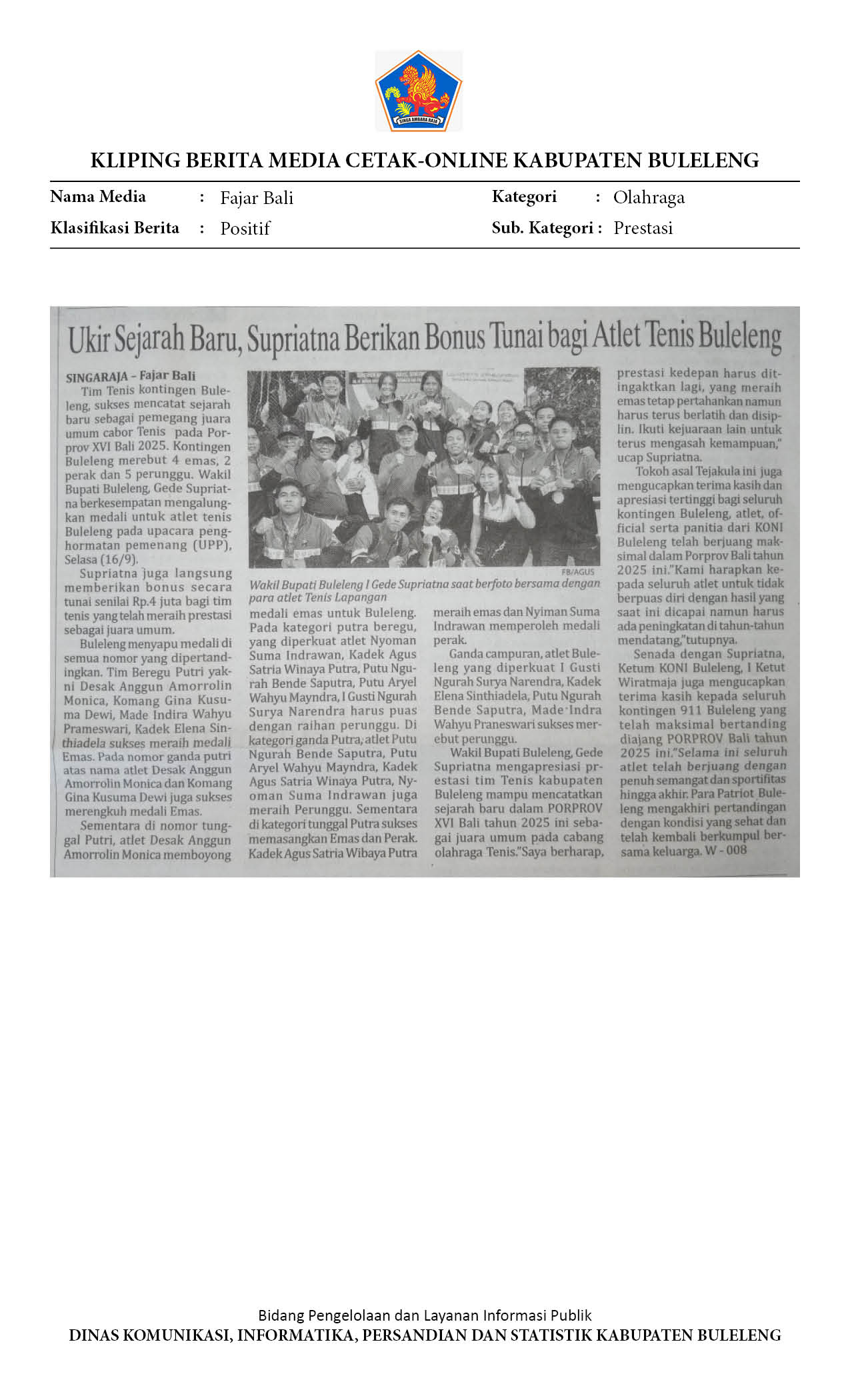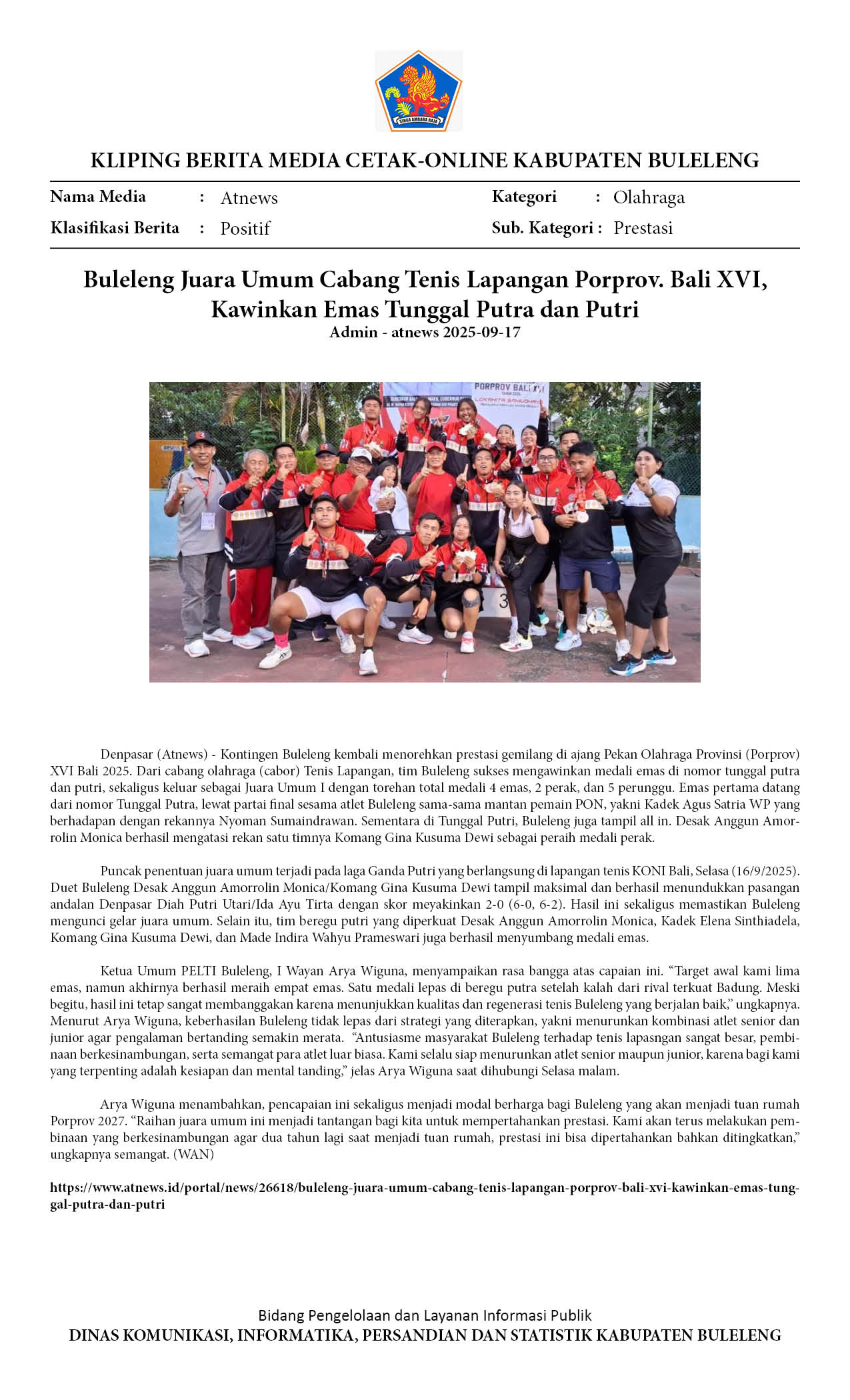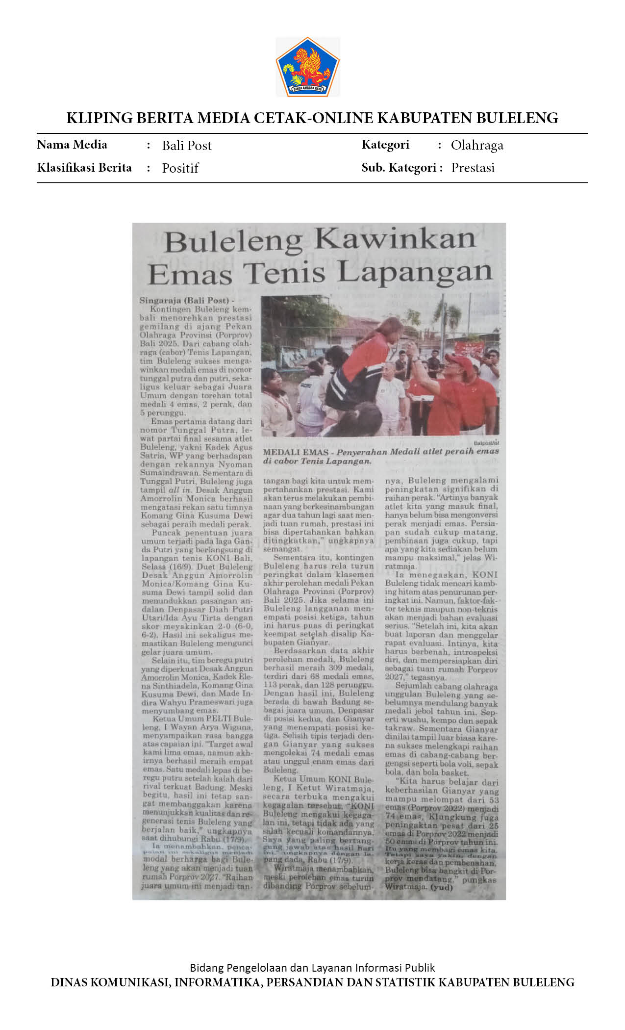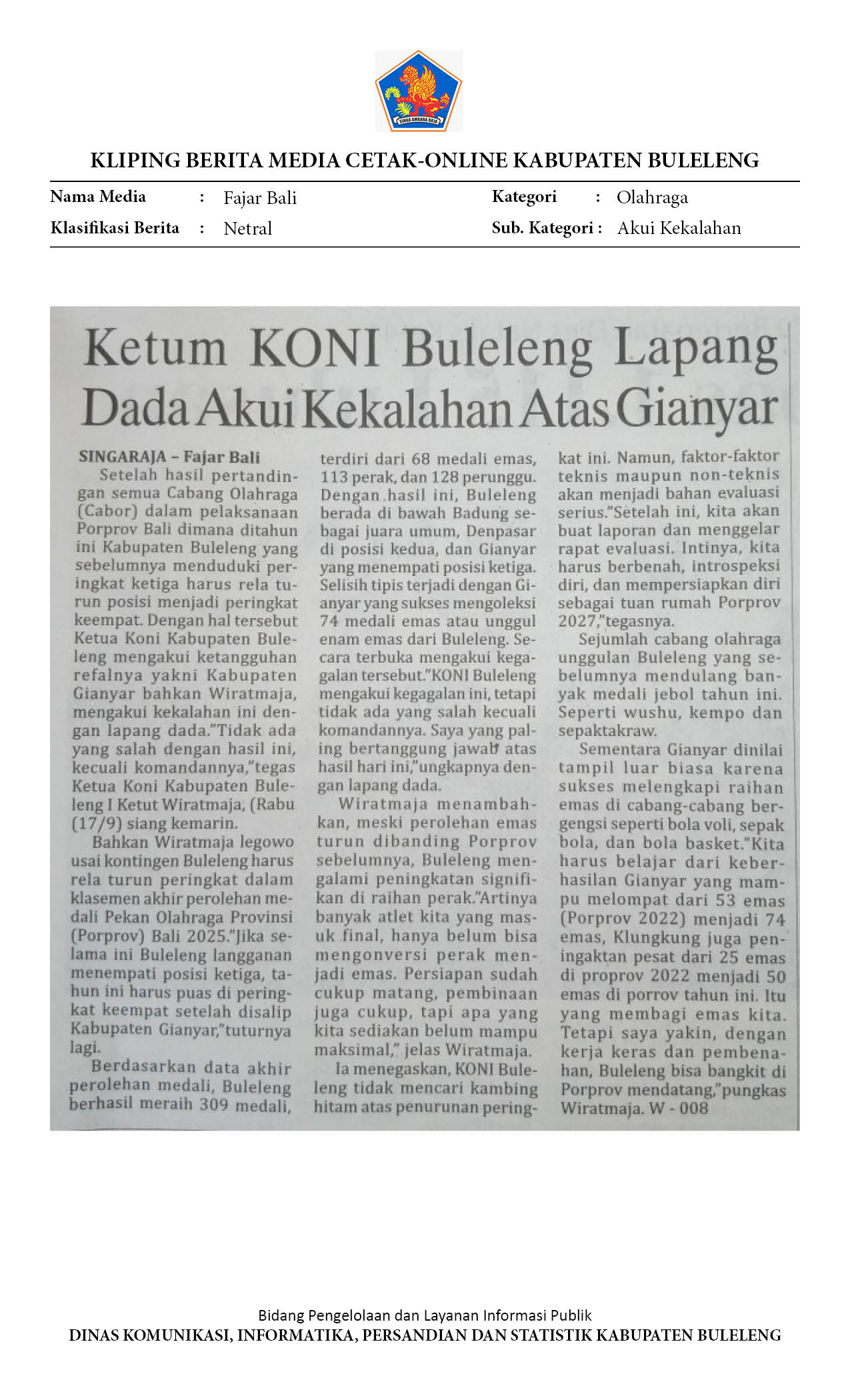 Kliping Kategori Olahraga Edisi 18 September 2025