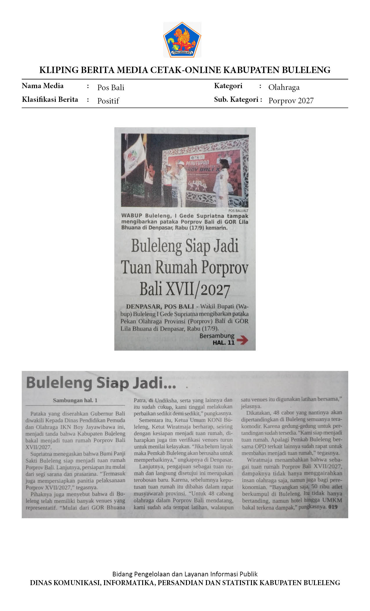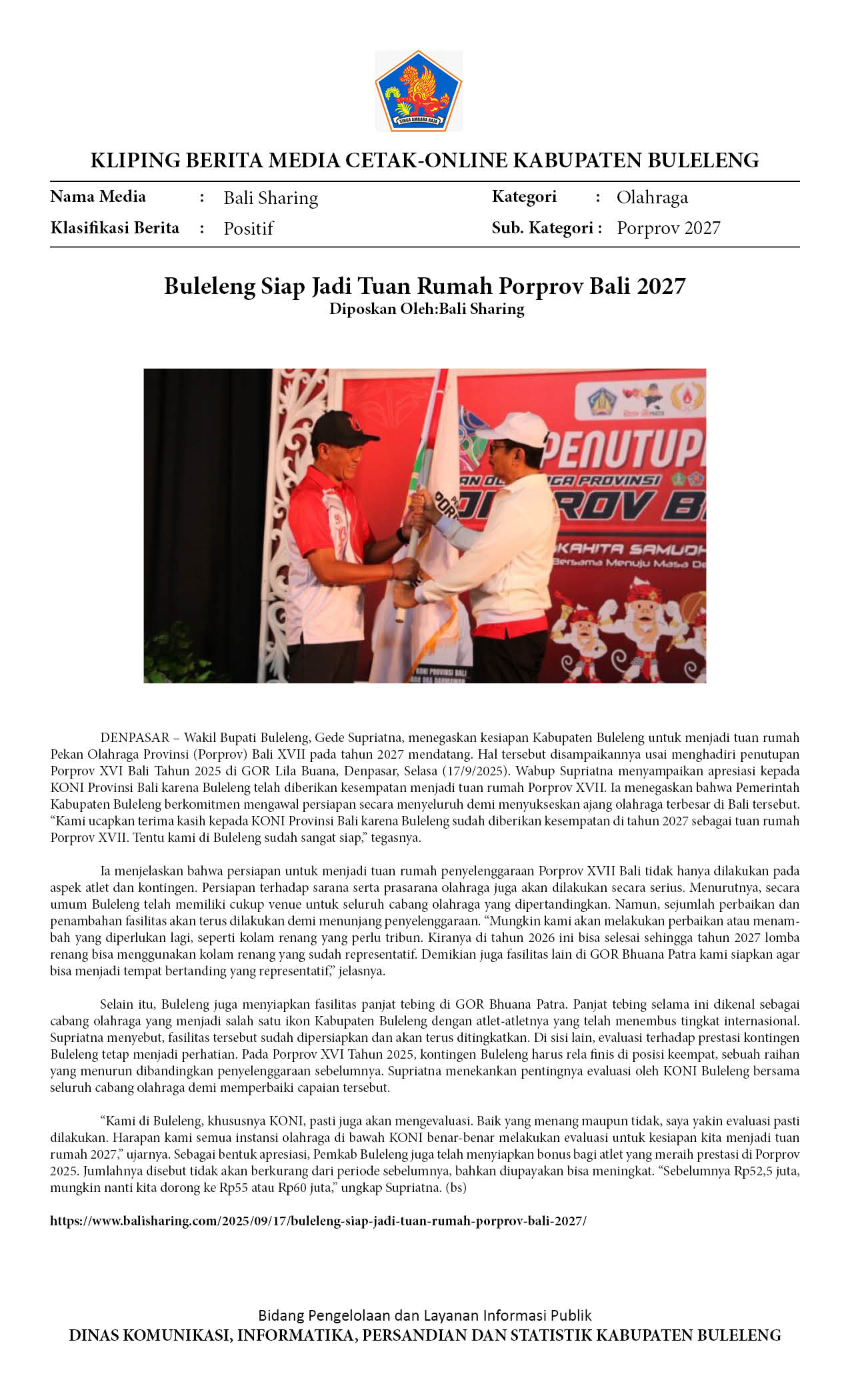 BULELENG SIAP JADI TUAN RUMAH PORPROV BALI 2027