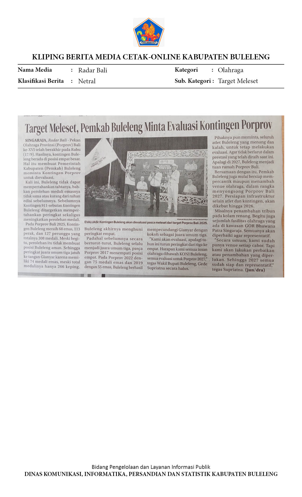 TARGET MELESET, PEMKAB BULELENG MINTA EVALUASI KONTINGEN PORPROV