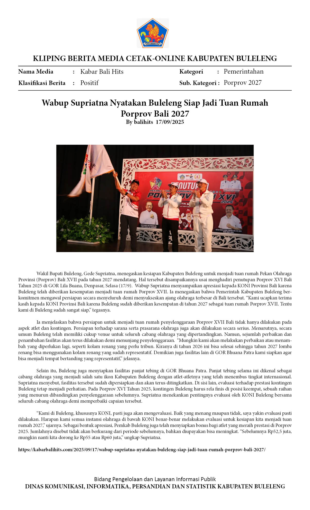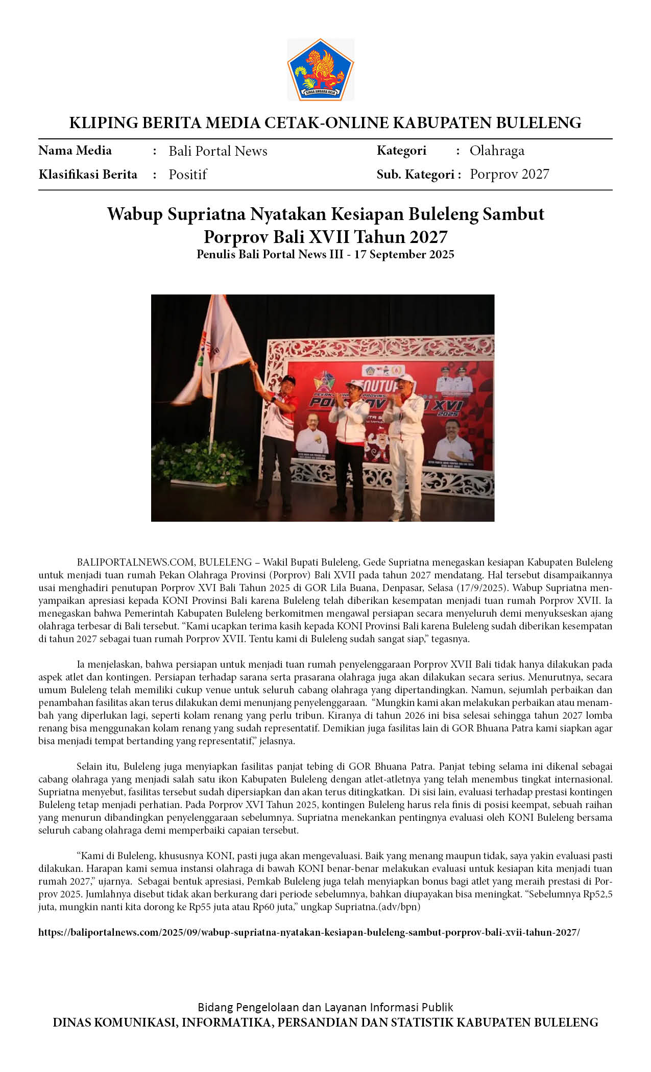 WABUP SUPRIATNA NYATAKAN KESIAPAN BULELENG SAMBUT PORPROV BALI XVII TAHUN 2027