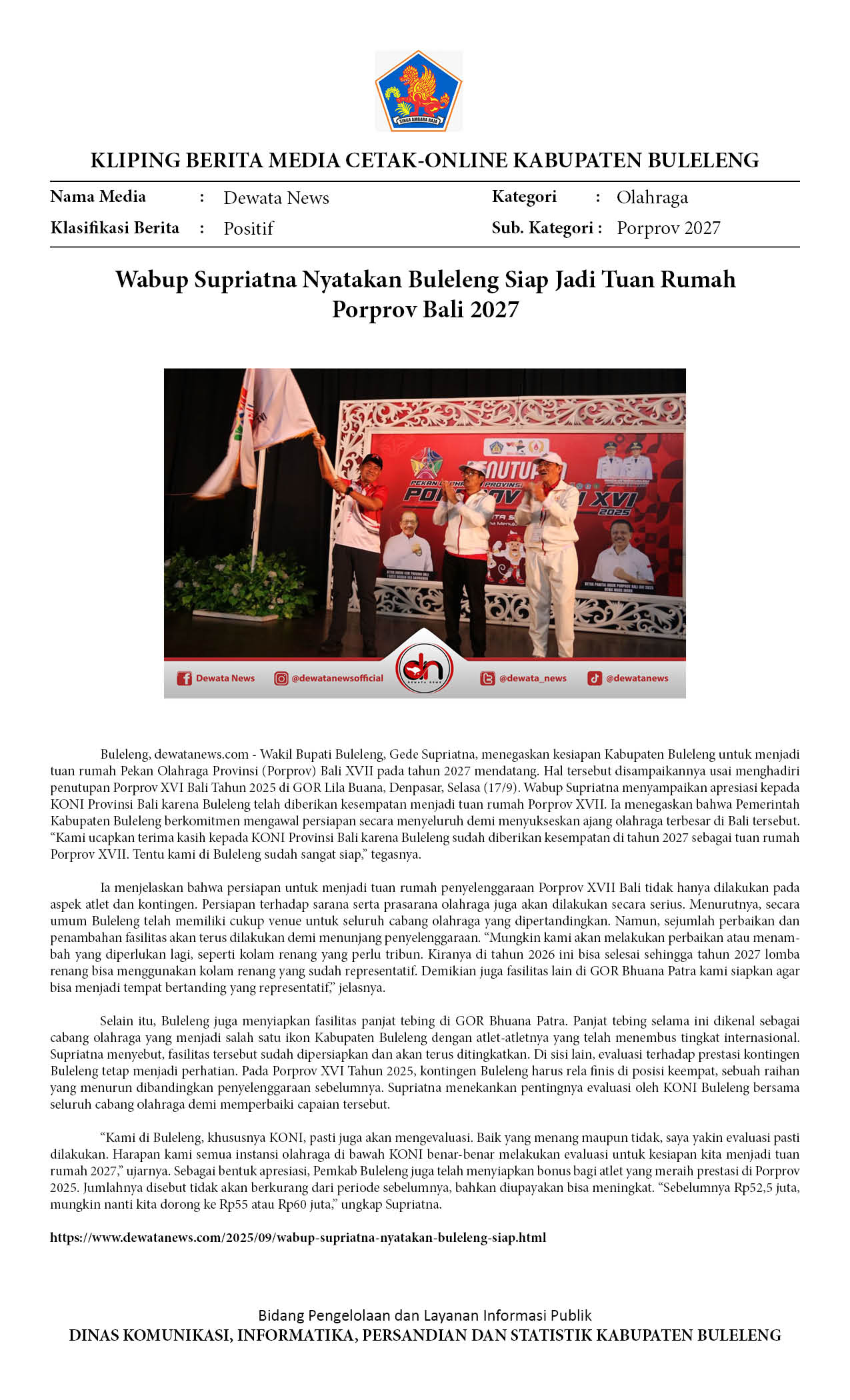 WABUP SUPRIATNA NYATAKAN BULELENG SIAP JADI TUAN RUMAH PORPROV BALI 2027