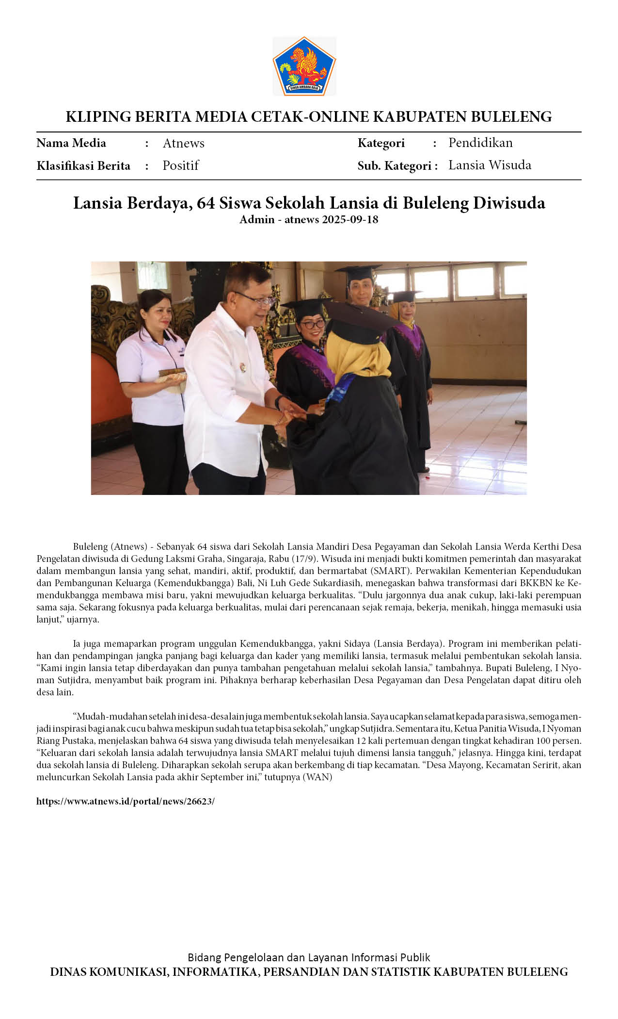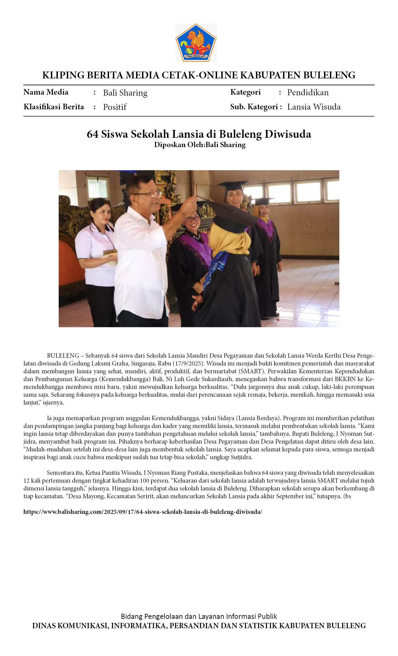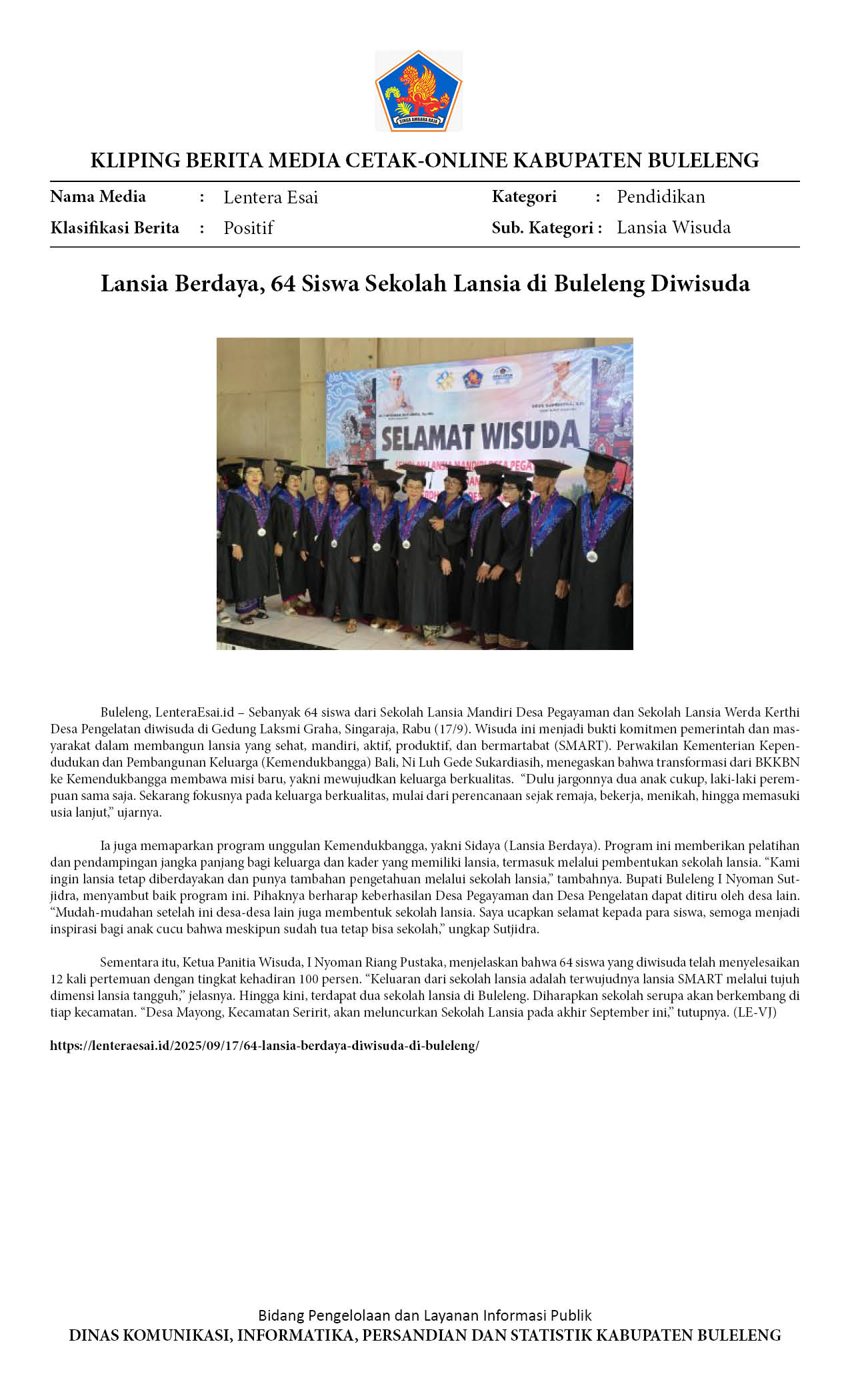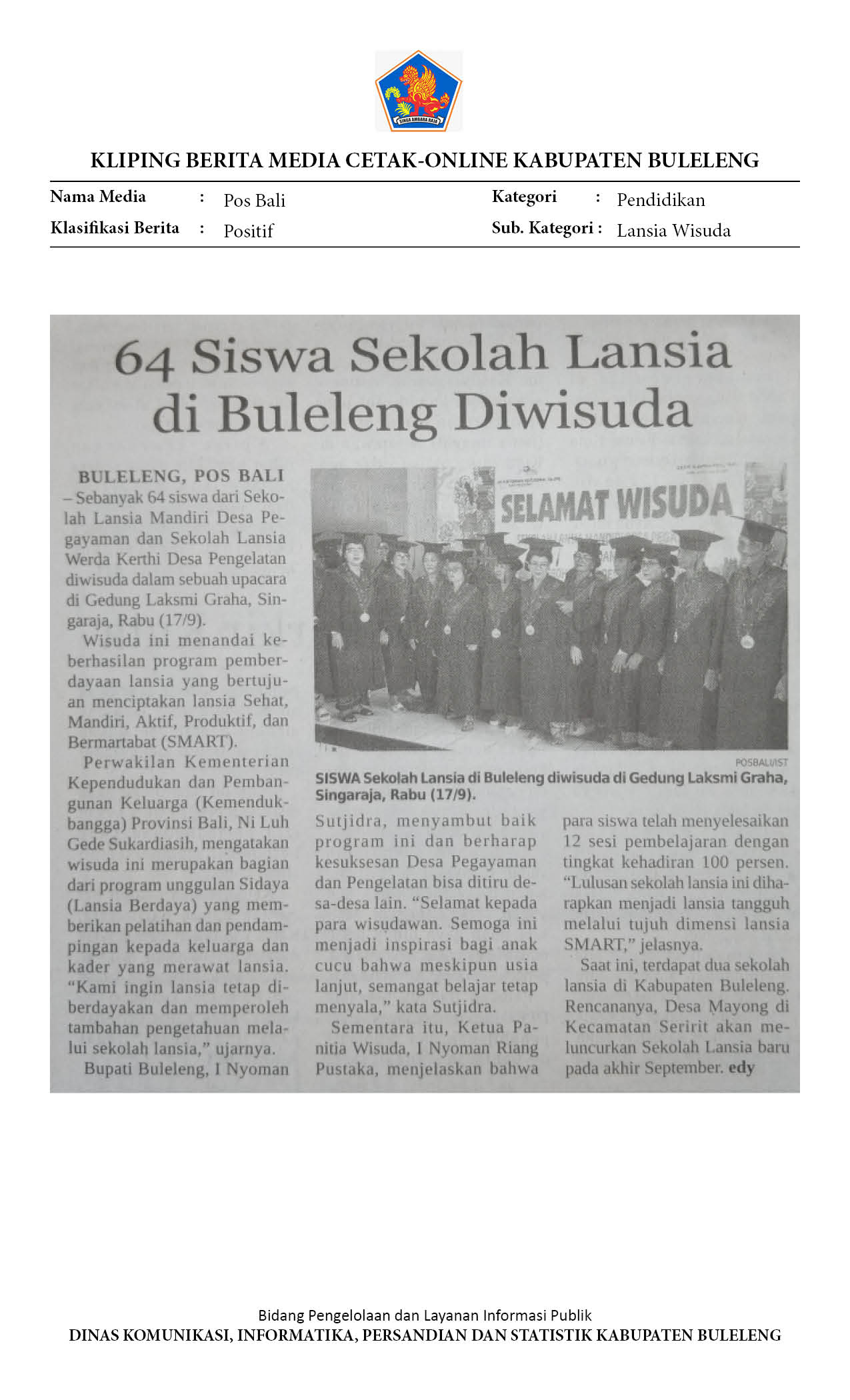 64 SISWA SEKOLAH LANSIA DI BULELENG DIWISUDA