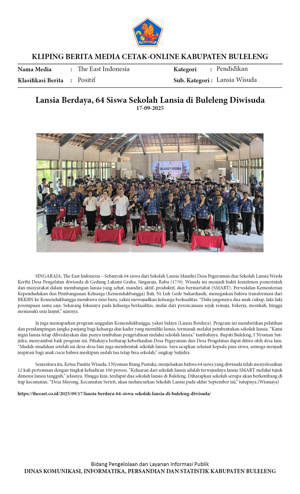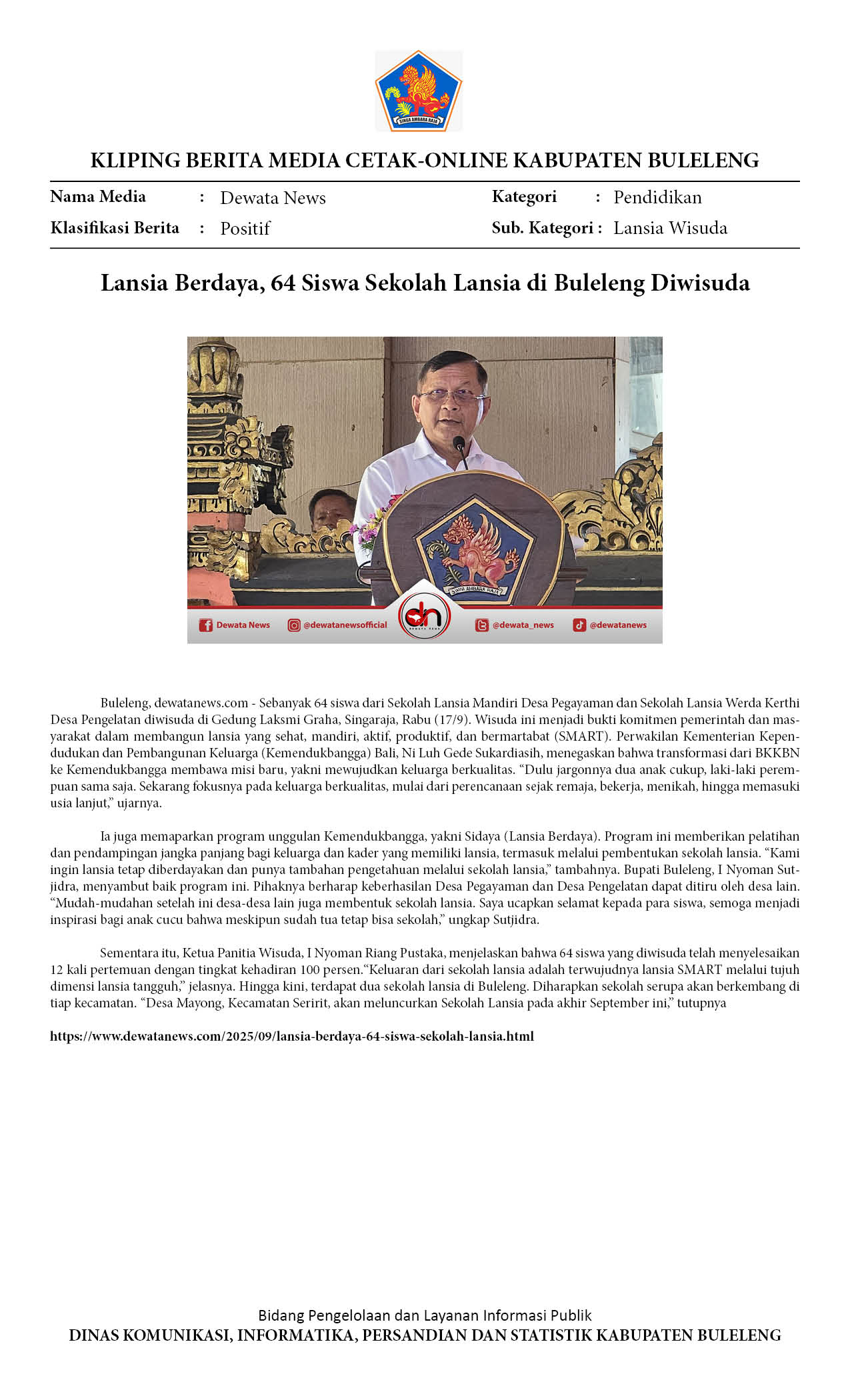 LANSIA BERDAYA, 64 SISWA SEKOLAH LANSIA DI BULELENG DIWISUDA