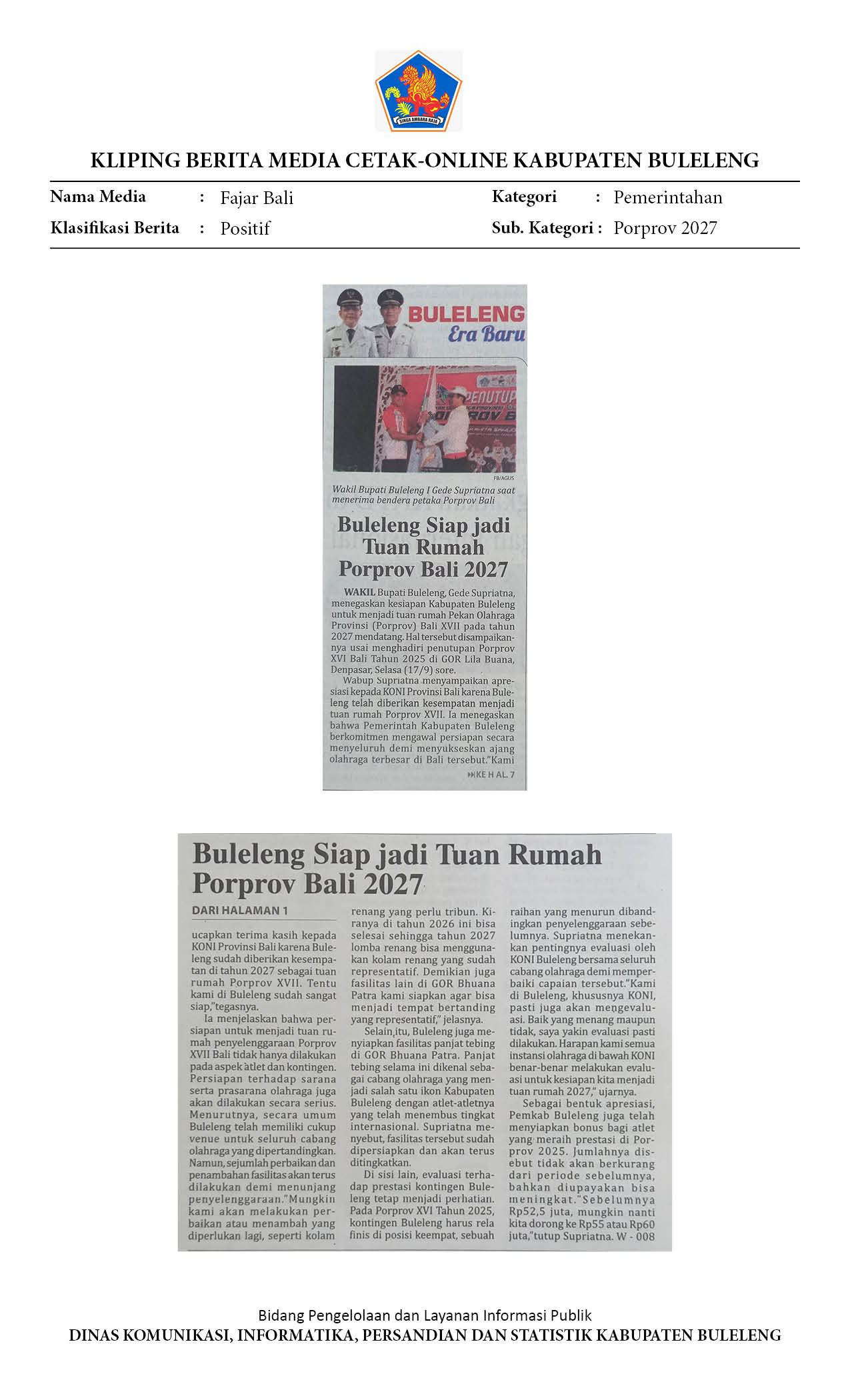 BULELENG SIAP JADI TUAN RUMAH PORPROV BALI 2027