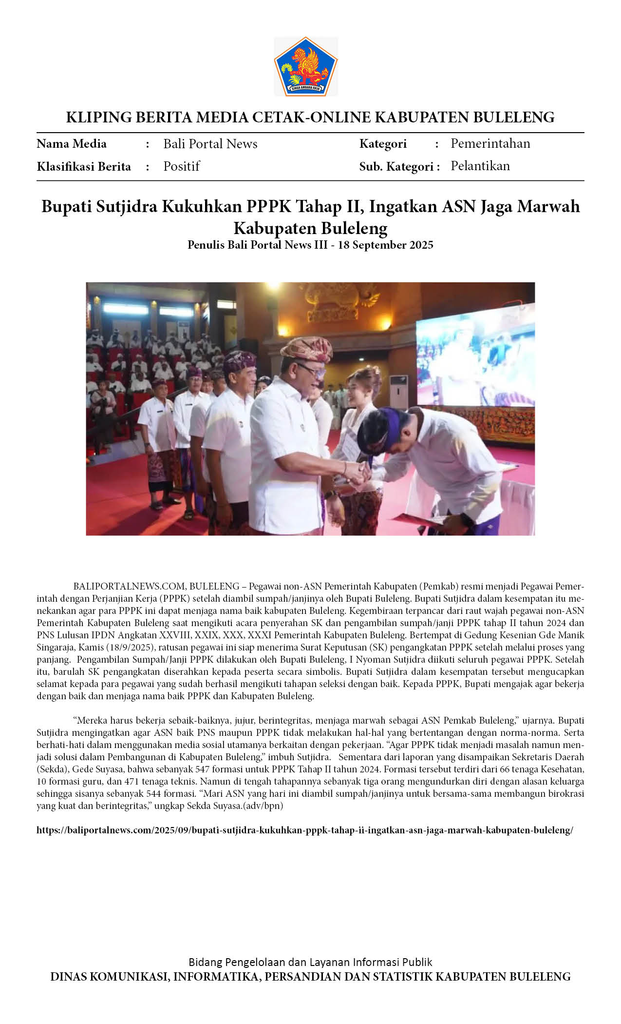 Kliping Kategori Pemerintahan Edisi 19 September 2025