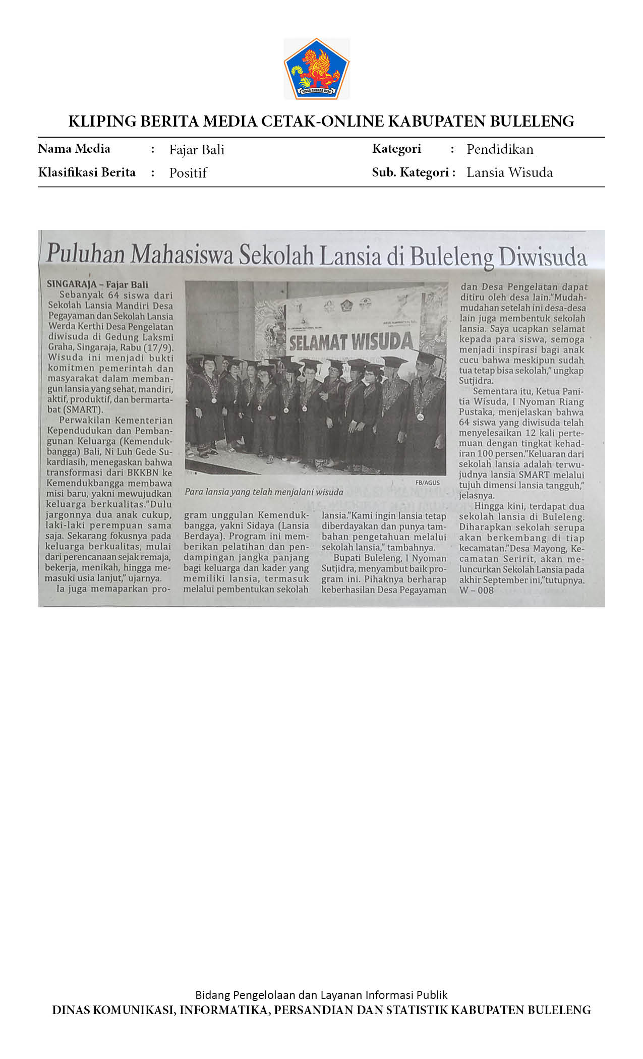 PULUHAN MAHASISWA SEKOLAH LANSIA DI BULELENG DIWISUDA
