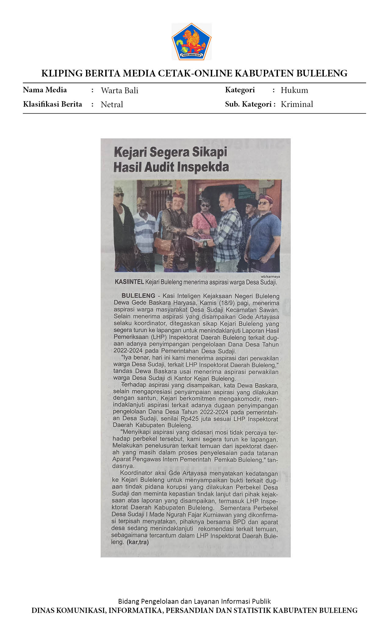 KEJARI SEGERA SIKAPI HASIL AUDIT INSPEKDA