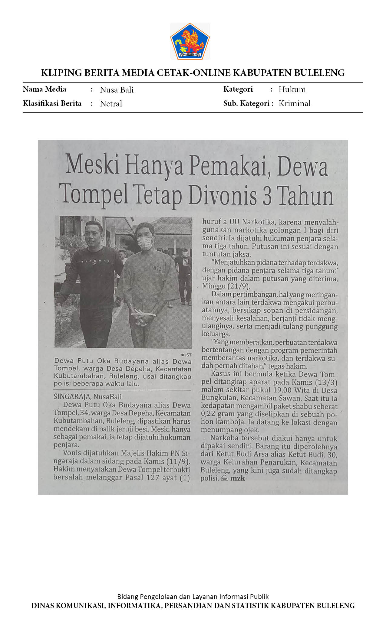 MESKI HANYA PEMAKAI, DEWA TOMPEL TETAP DIVONIS 3 TAHUN