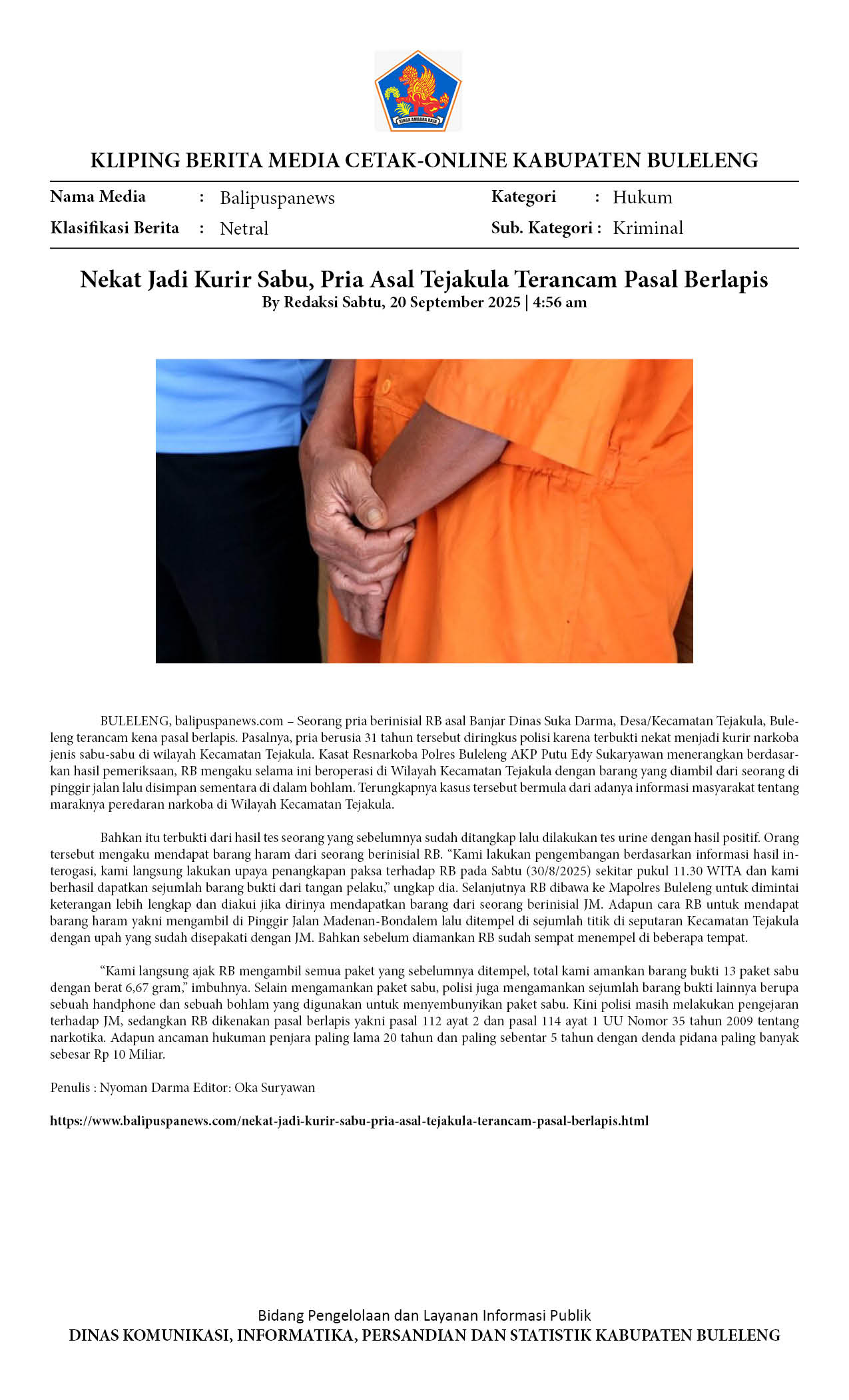 NEKAT JADI KURIR SABU, PRIA ASAL TEJAKULA TERANCAM PASAL BERLAPIS
