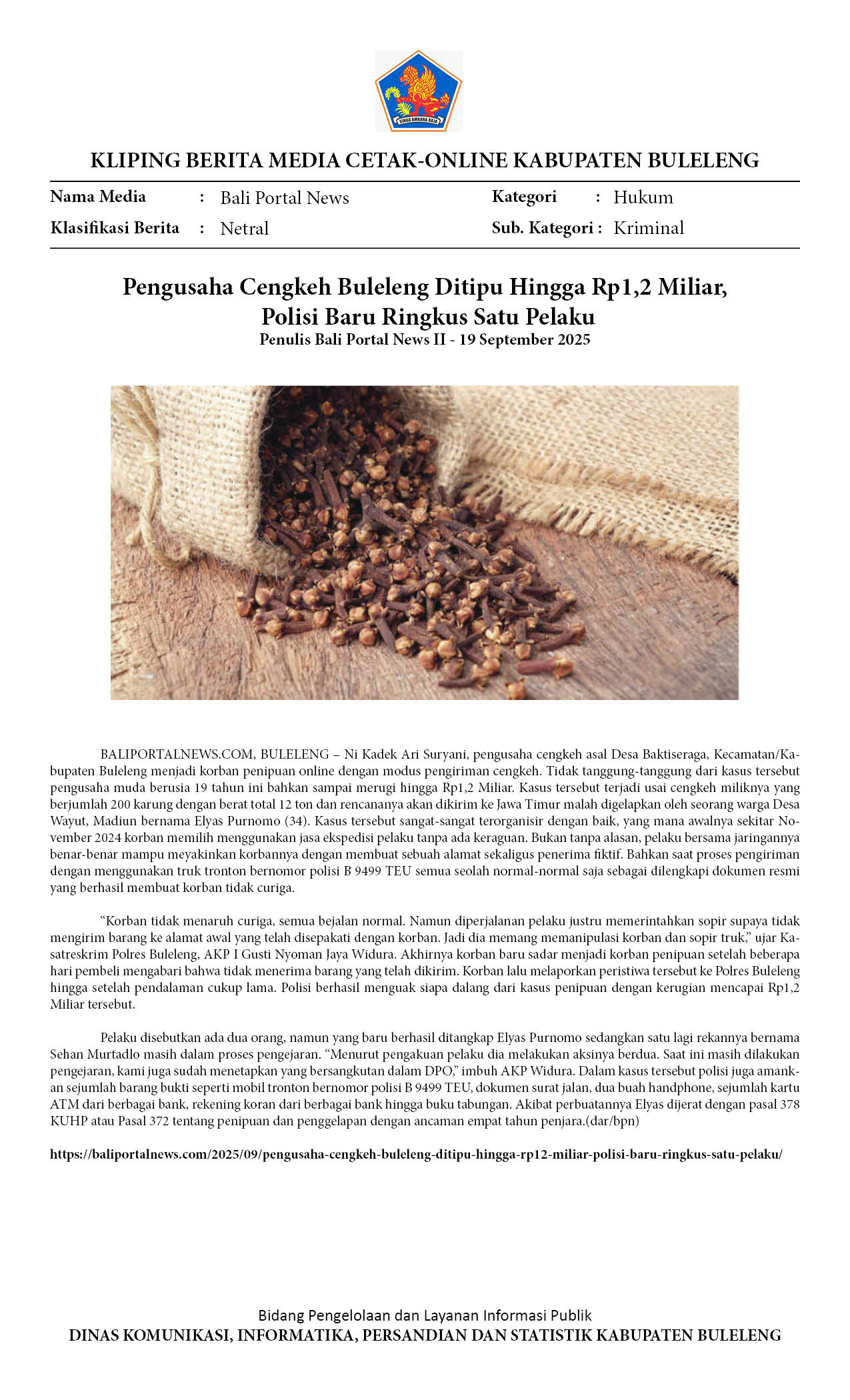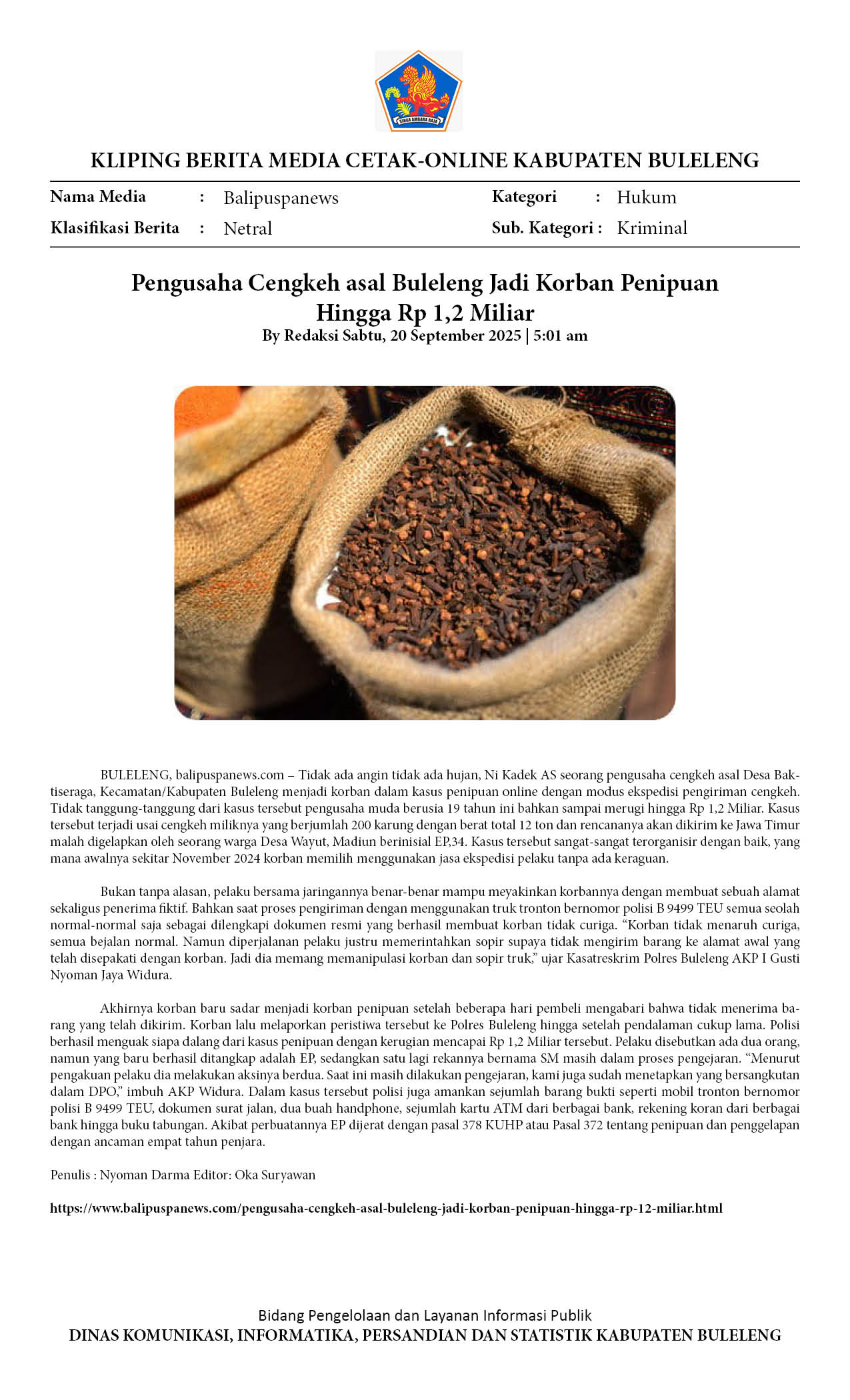 PENGUSAHA CENGKEH ASAL BULELENG JADI KORBAN PENIPUAN HINGGA RP 1,2 MILIAR