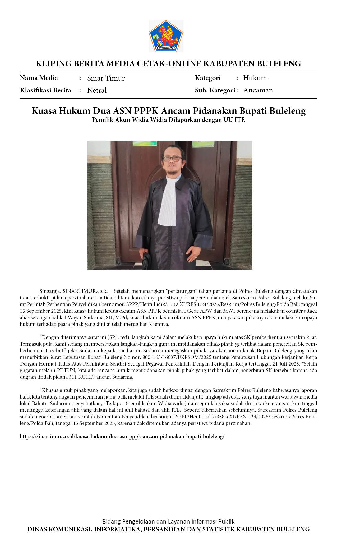 KUASA HUKUM DUA ASN PPPK ANCAM PIDANAKAN BUPATI BULELENG