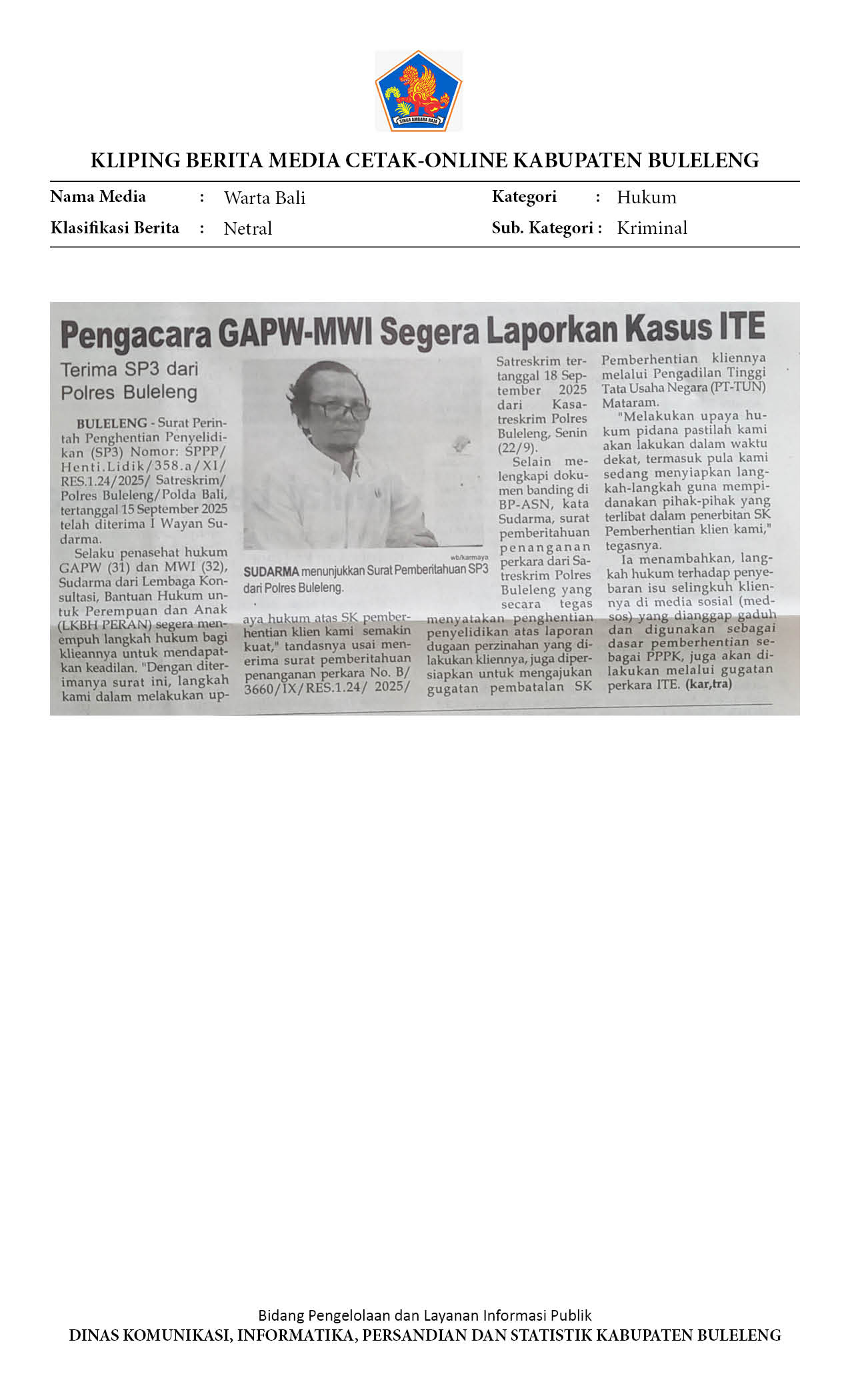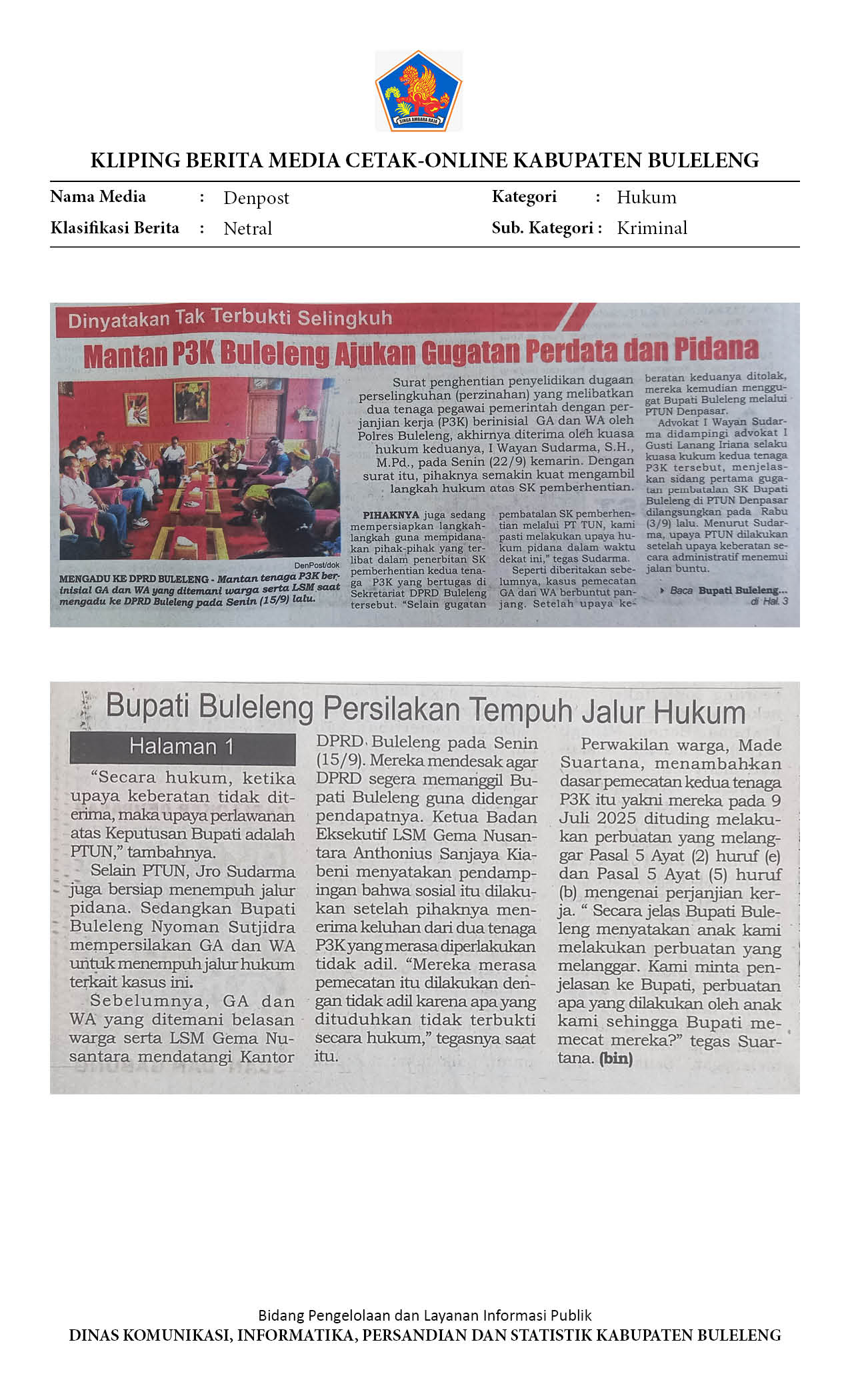 MANTAN P3K BULELENG AJUKAN GUGATAN PERDATA DAN PIDANA
