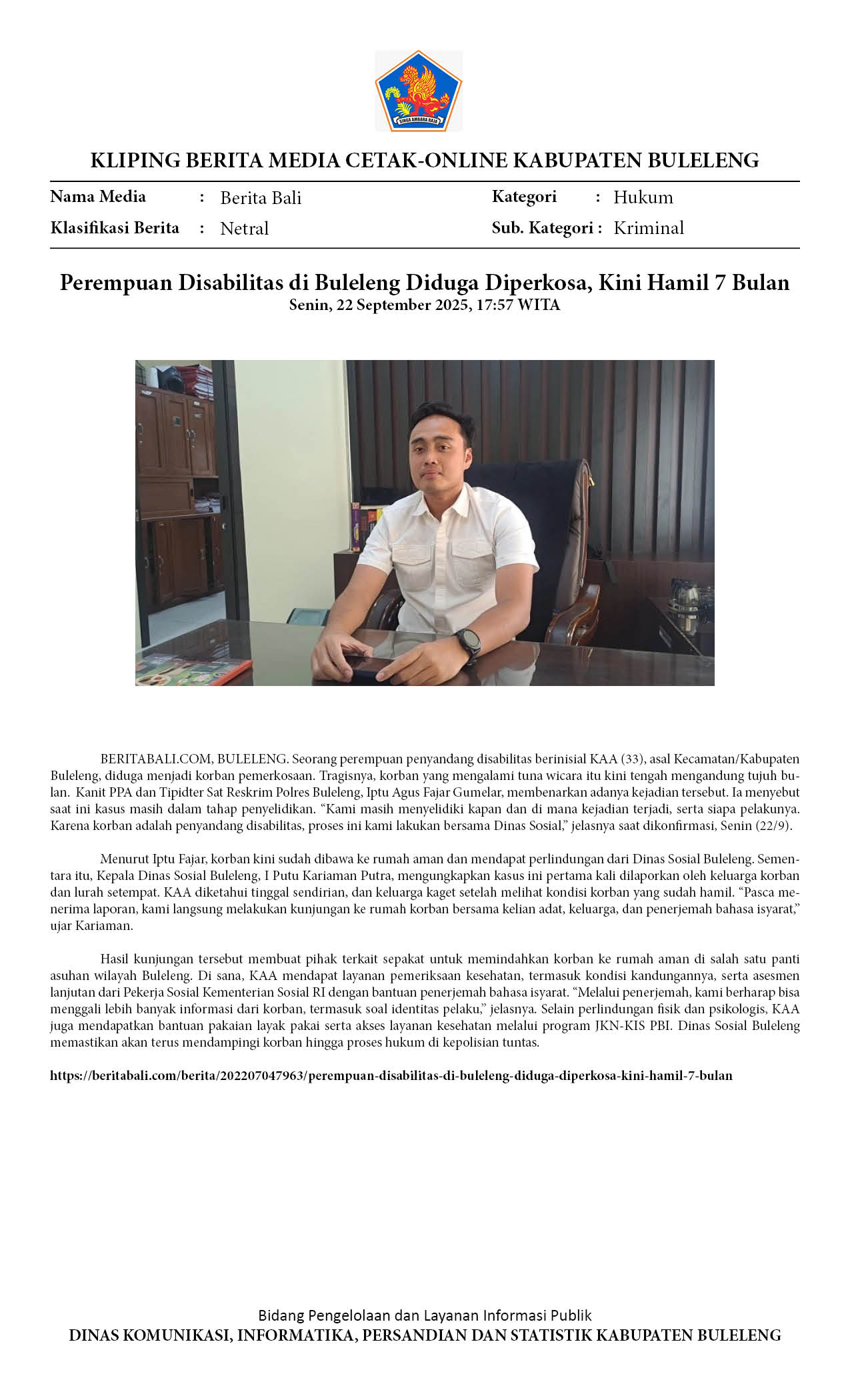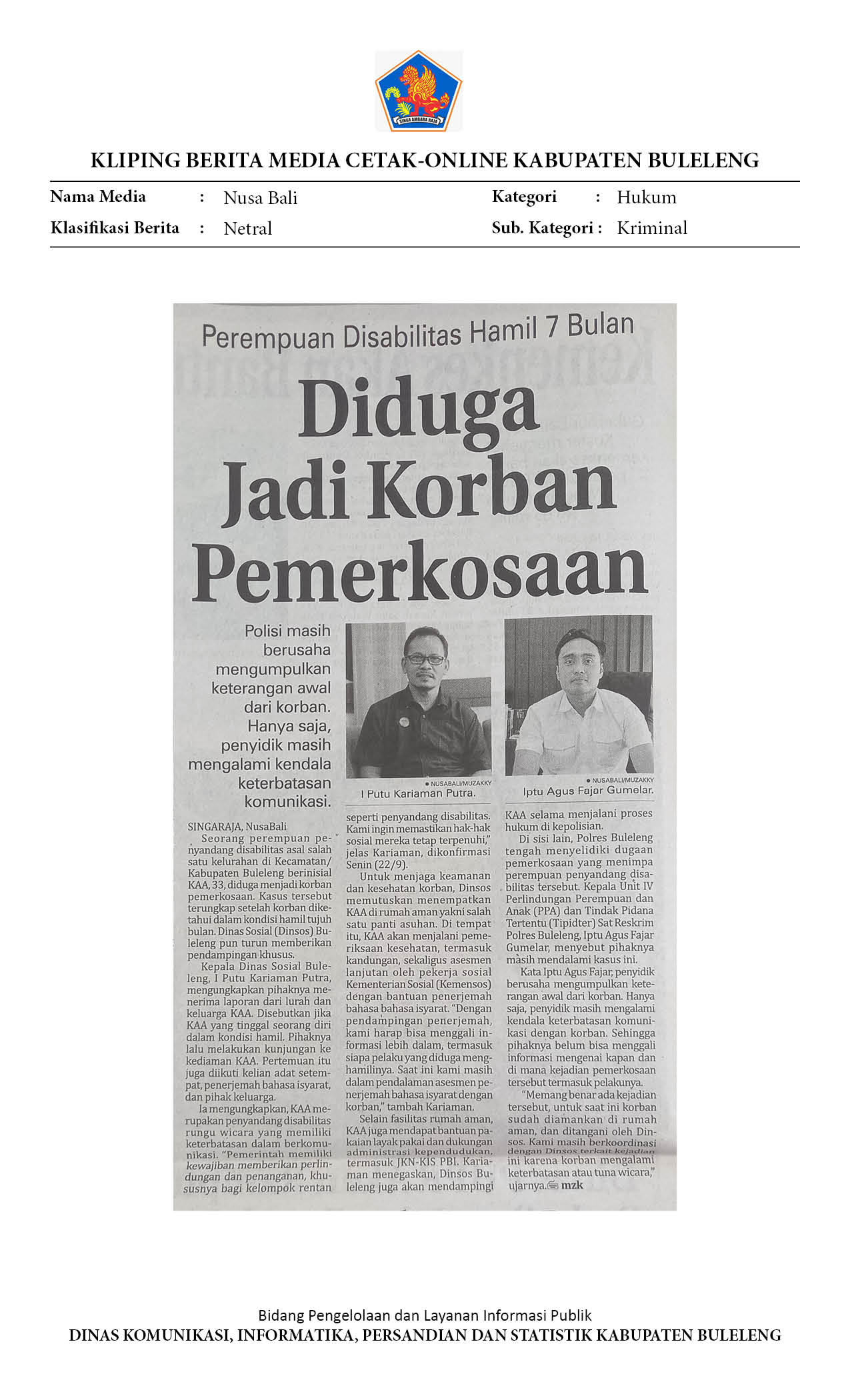 PEREMPUAN DISABILITAS DI BULELENG DIDUGA DIPERKOSA, KINI HAMIL 7 BULAN