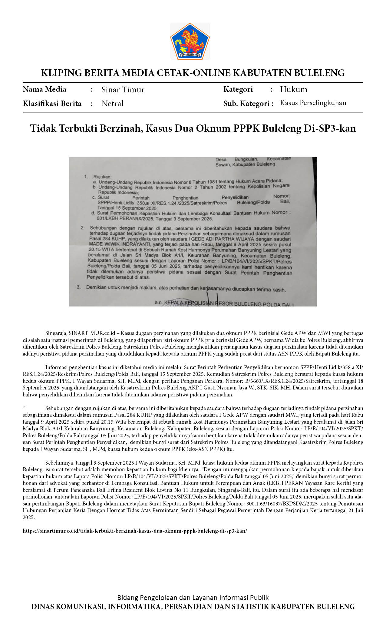 TIDAK TERBUKTI BERZINAH, KASUS DUA OKNUM PPPK BULELENG DI-SP3-KAN