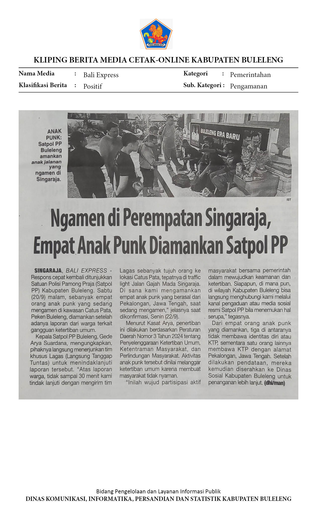 NGAMEN DI PEREMPATAN SINGARAJA, EMPAT ANAK PUNK DIAMANKAN SATPOL PP