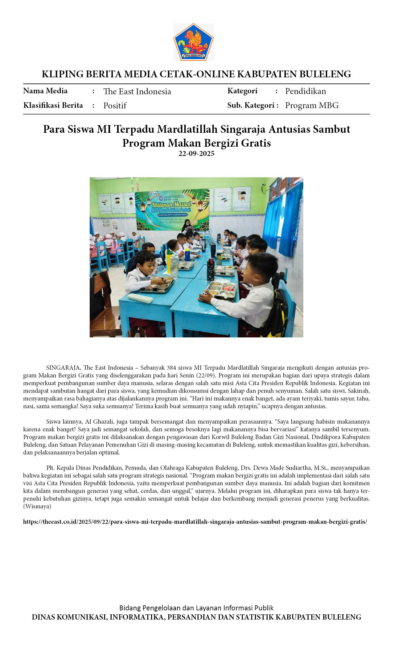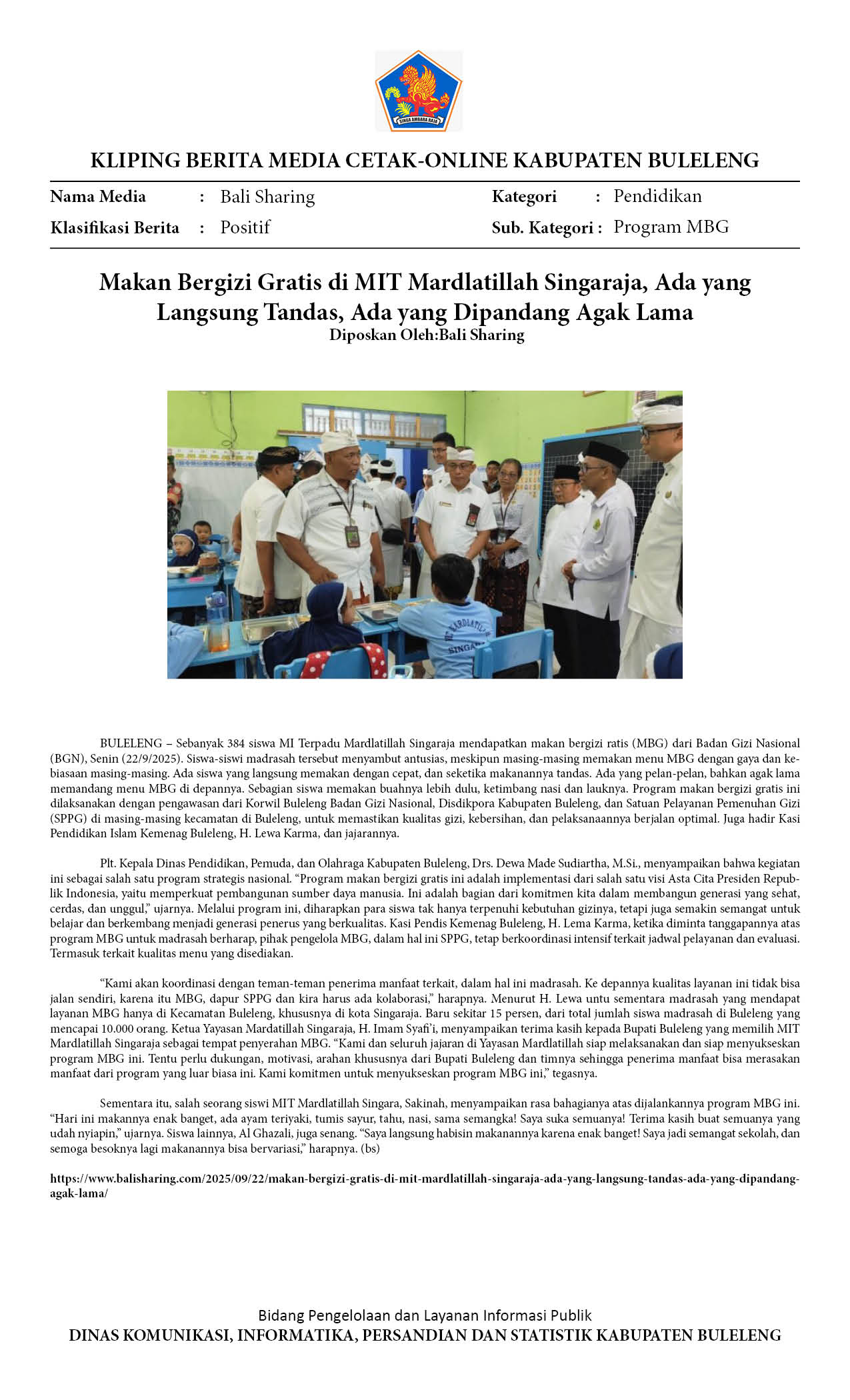 PROGRAM MBG DI BULELENG BARU 20 PERSEN