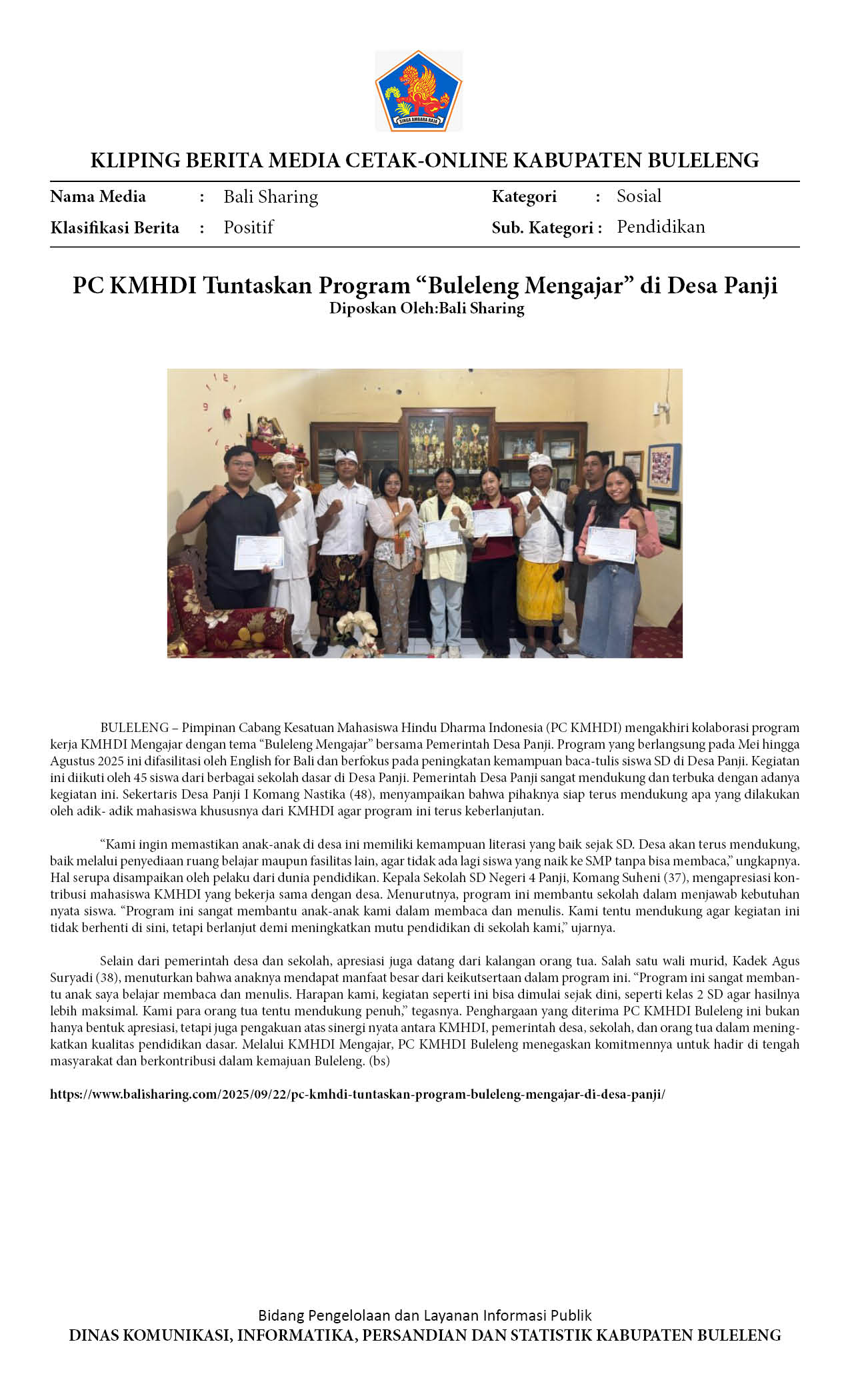 PC KMHDI TUNTASKAN PROGRAM “BULELENG MENGAJAR” DI DESA PANJI
