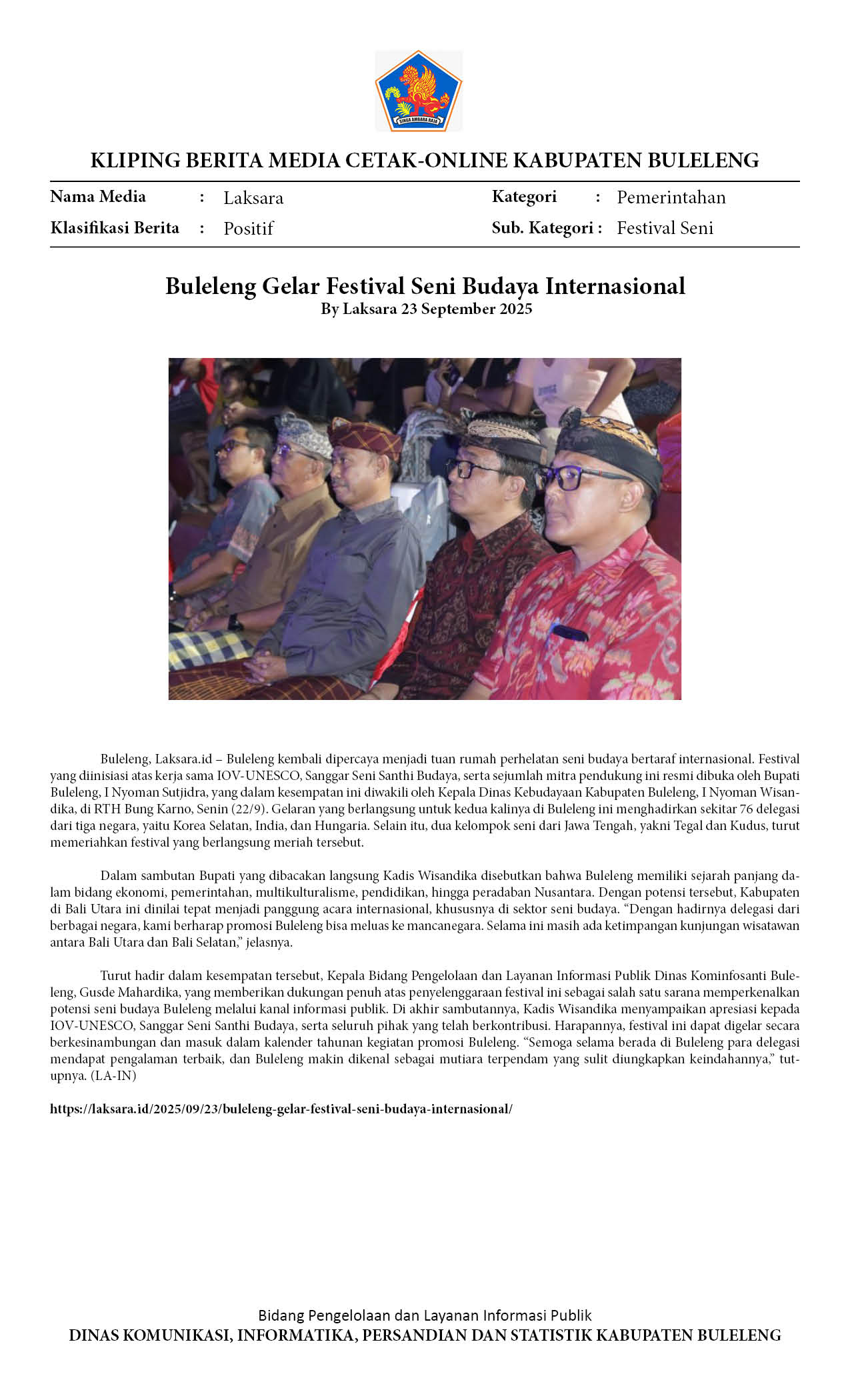 BULELENG GELAR FESTIVAL SENI BUDAYA INTERNASIONAL