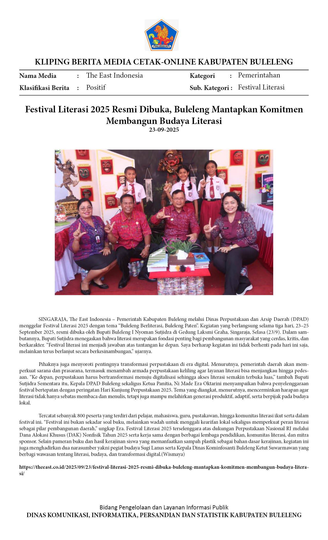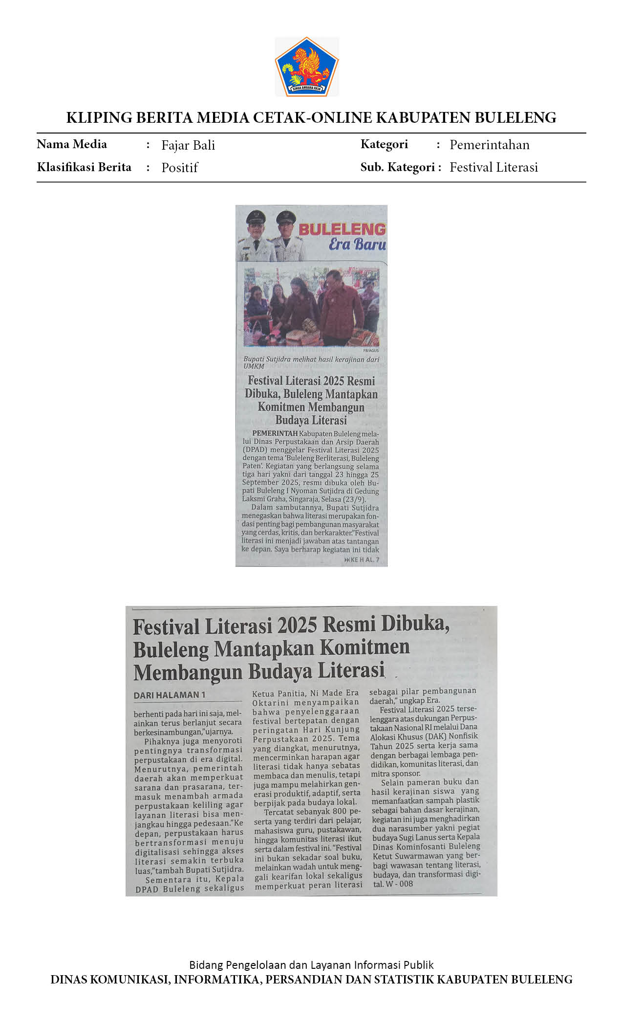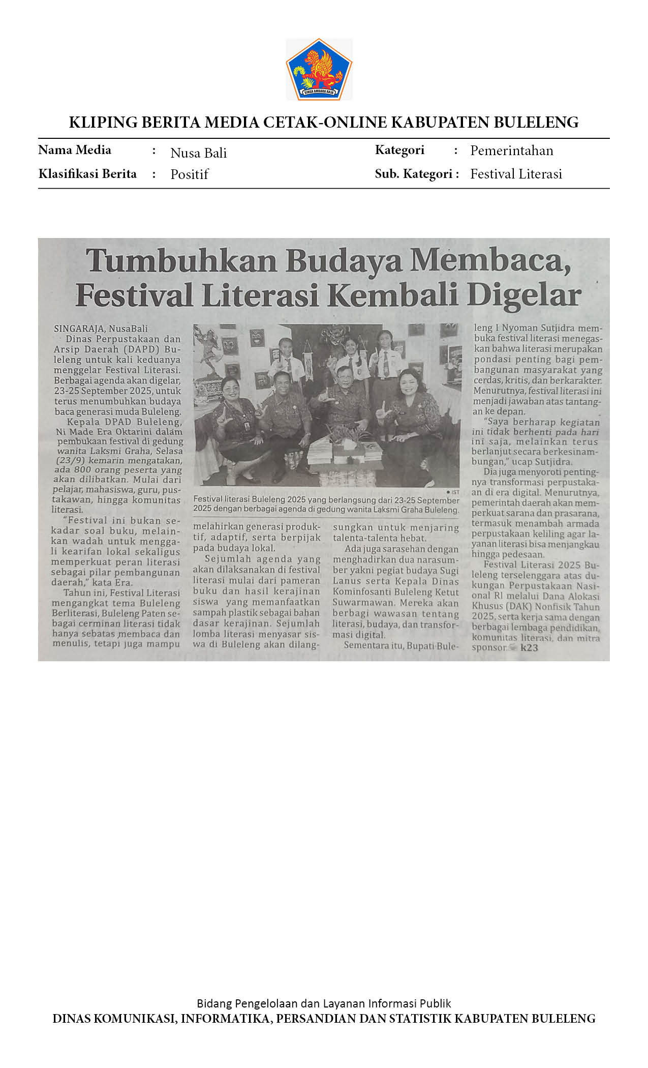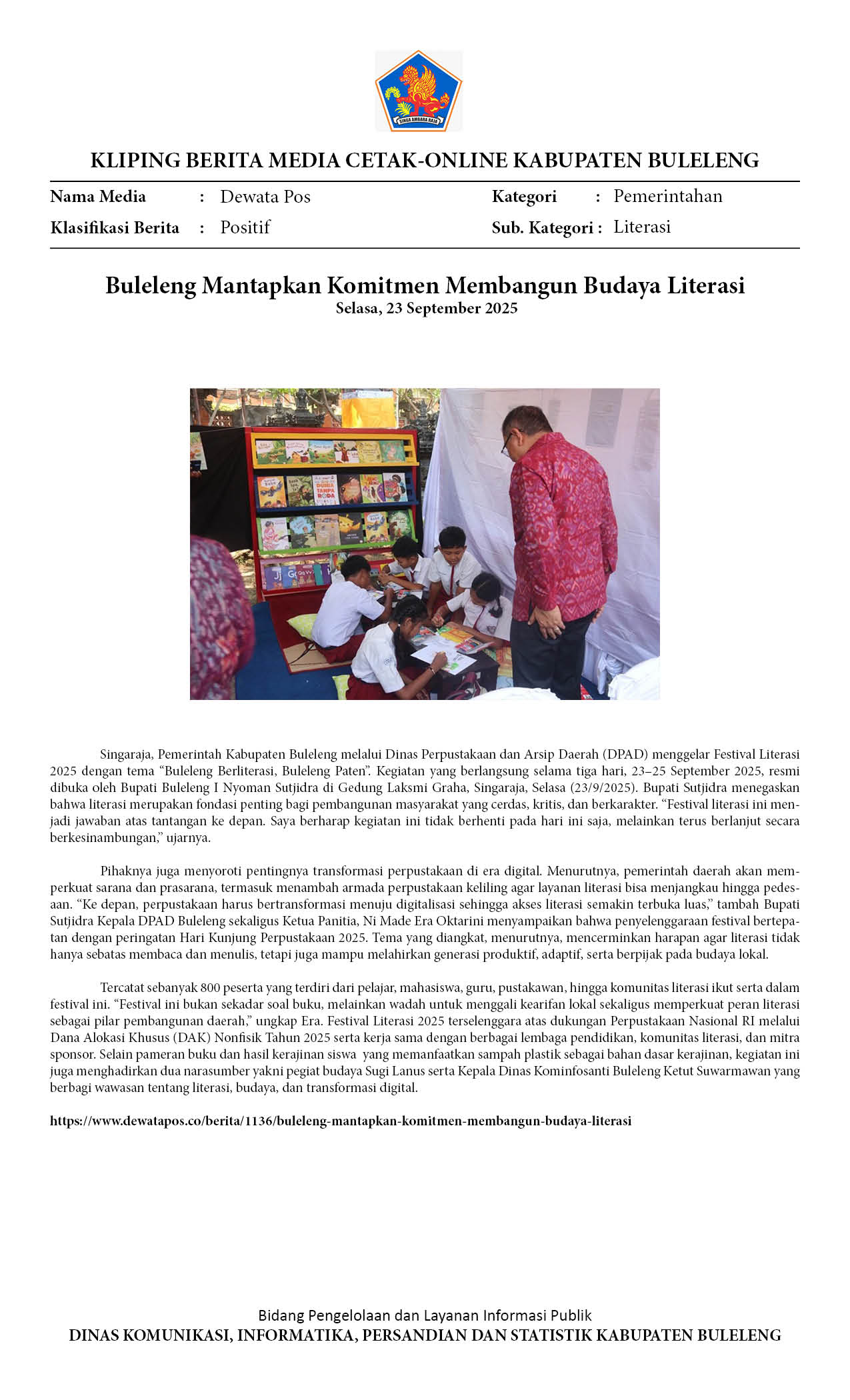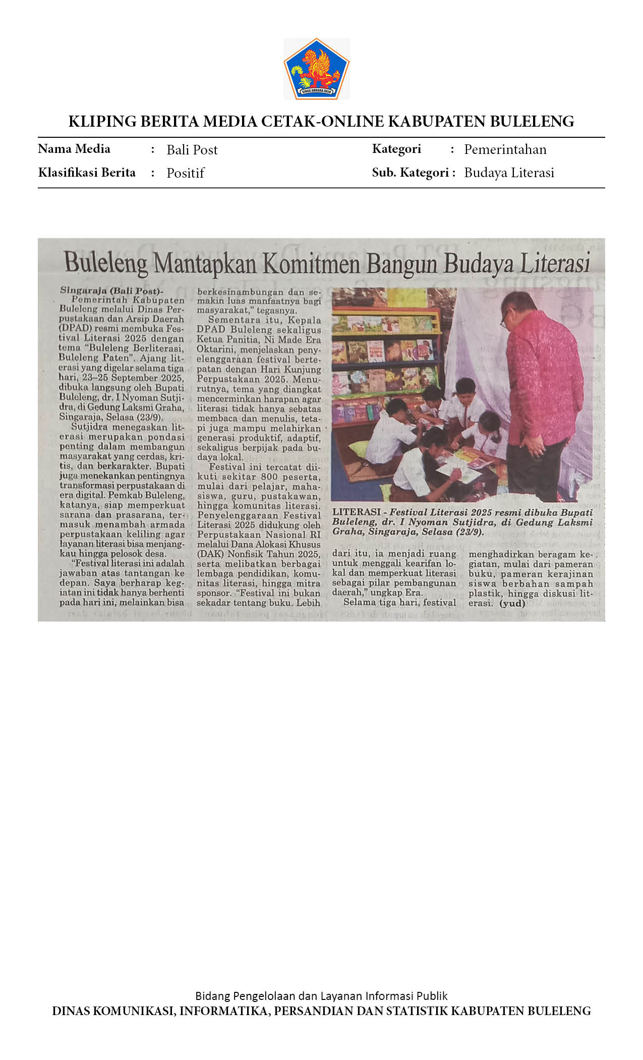 FESTIVAL LITERASI 2025 DIBUKA, BULELENG MANTAPKAN KOMITMEN MEMBANGUN BUDAYA LITERASI