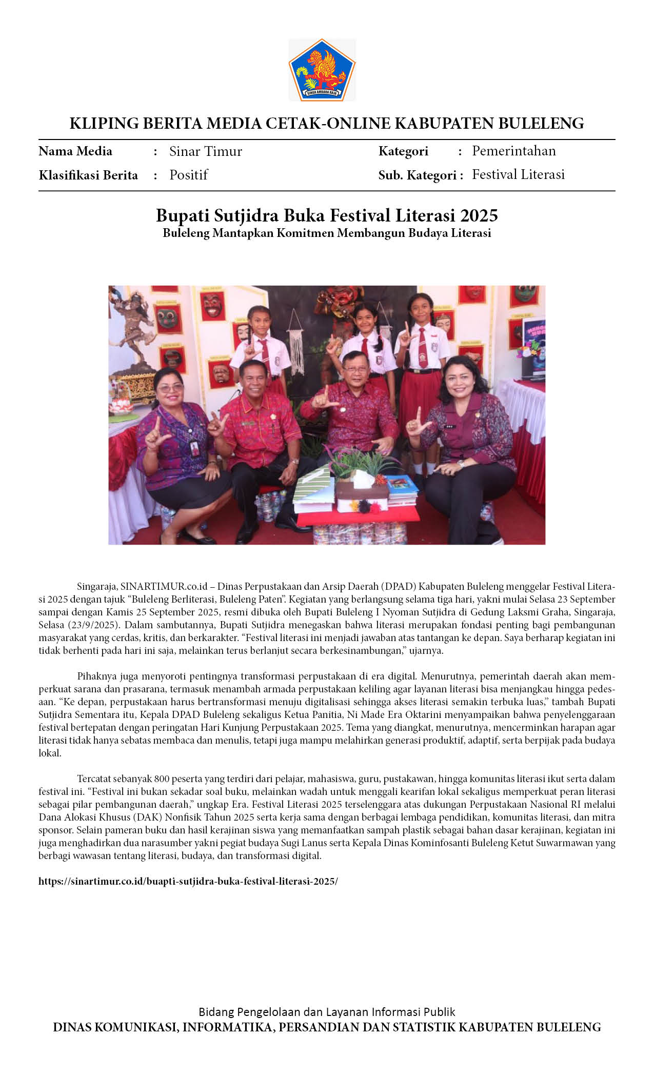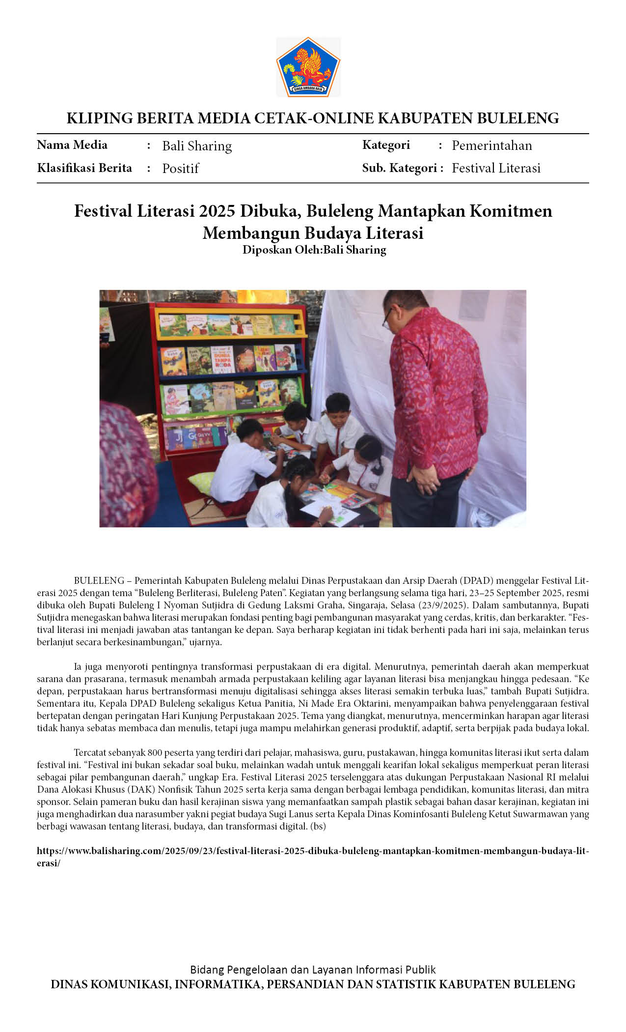 BUPATI SUTJIDRA BUKA FESTIVAL LITERASI 2025