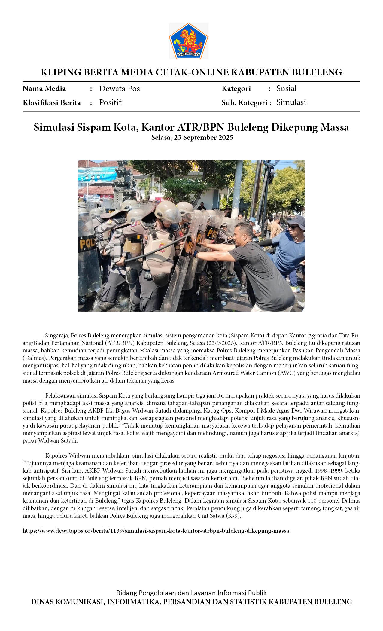 SIMULASI SISPAM KOTA, KANTOR ATR/BPN BULELENG DIKEPUNG MASSA