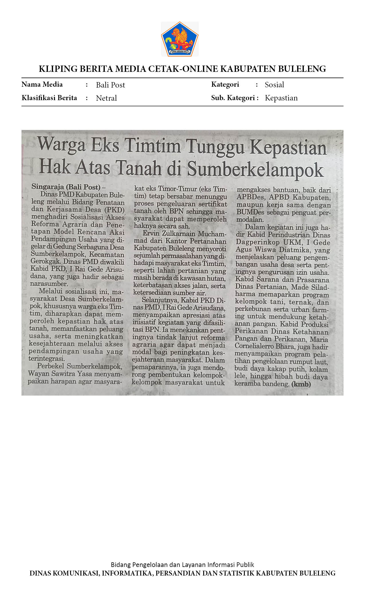 WARGA EKS TIMTIM TUNGGU KEPASTIAN HAK ATAS TANAH DI SUMBERKLAMPOK