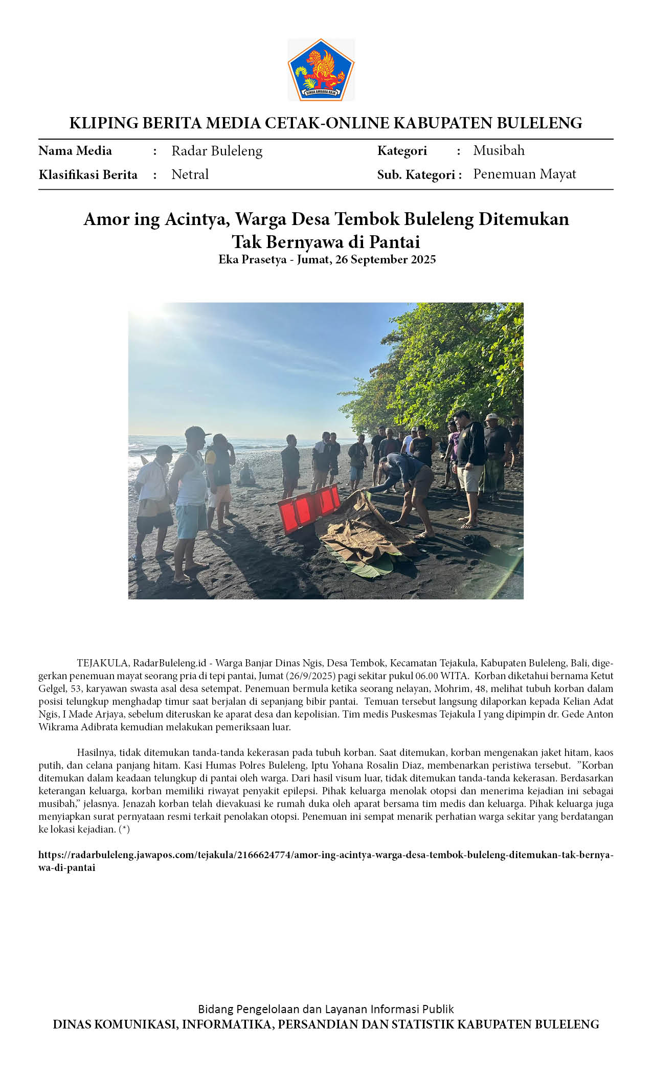 AMOR ING ACINTYA, WARGA DESA TEMBOK BULELENG DITEMUKAN TAK BERNYAWA DI PANTAI