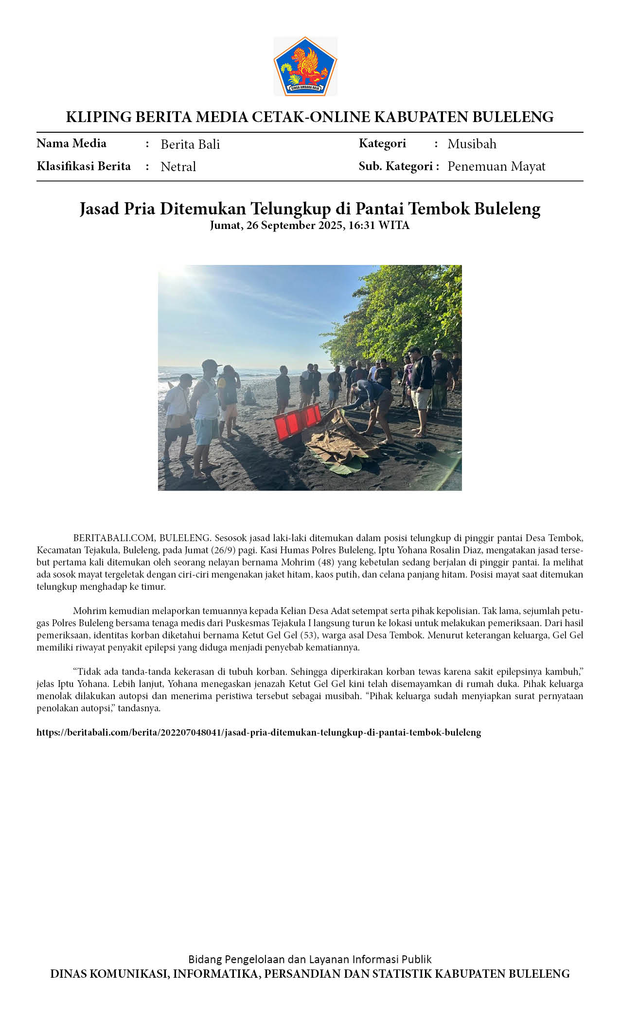 JASAD PRIA DITEMUKAN TELUNGKUP DI PANTAI TEMBOK BULELENG