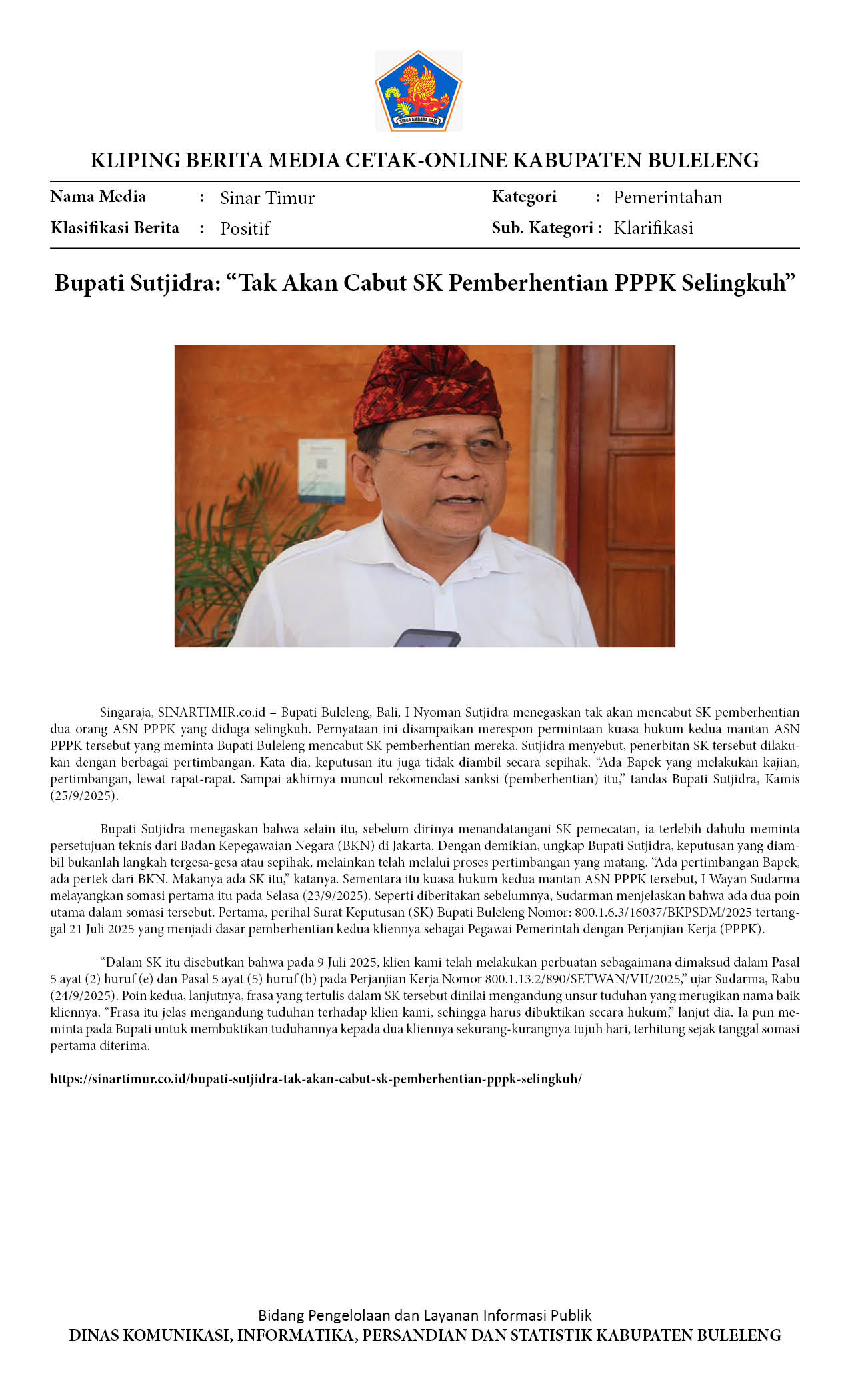 Kliping Kategori Pemerintahan Edisi 29 September 2025