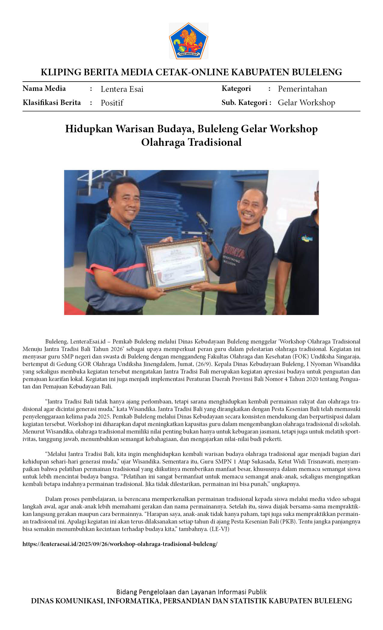 HIDUPKAN WARISAN BUDAYA, BULELENG GELAR WORKSHOP OLAHRAGA TRADISIONAL