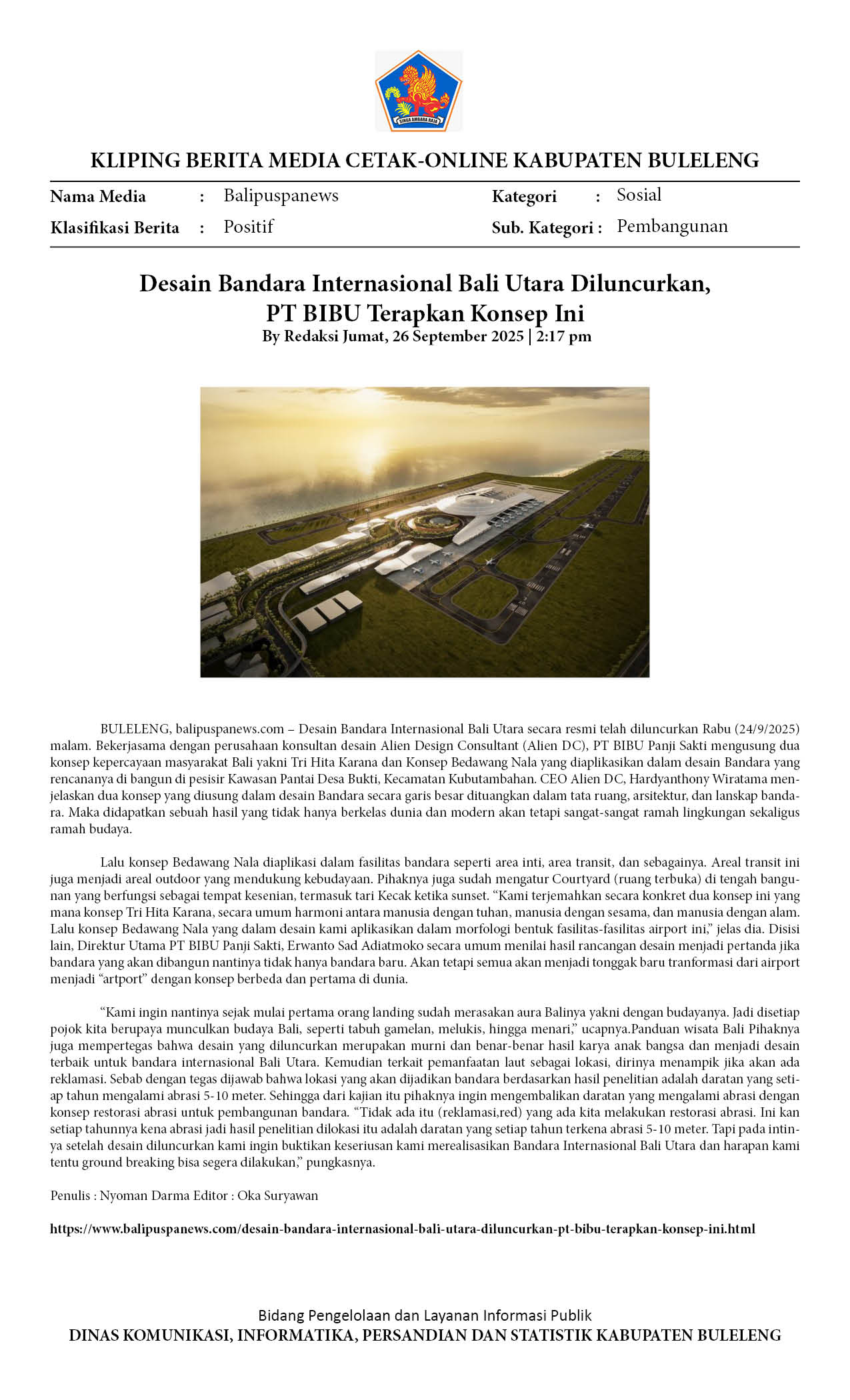 DESAIN BANDARA INTERNASIONAL BALI UTARA DILUNCURKAN, PT BIBU TERAPKAN KONSEP INI