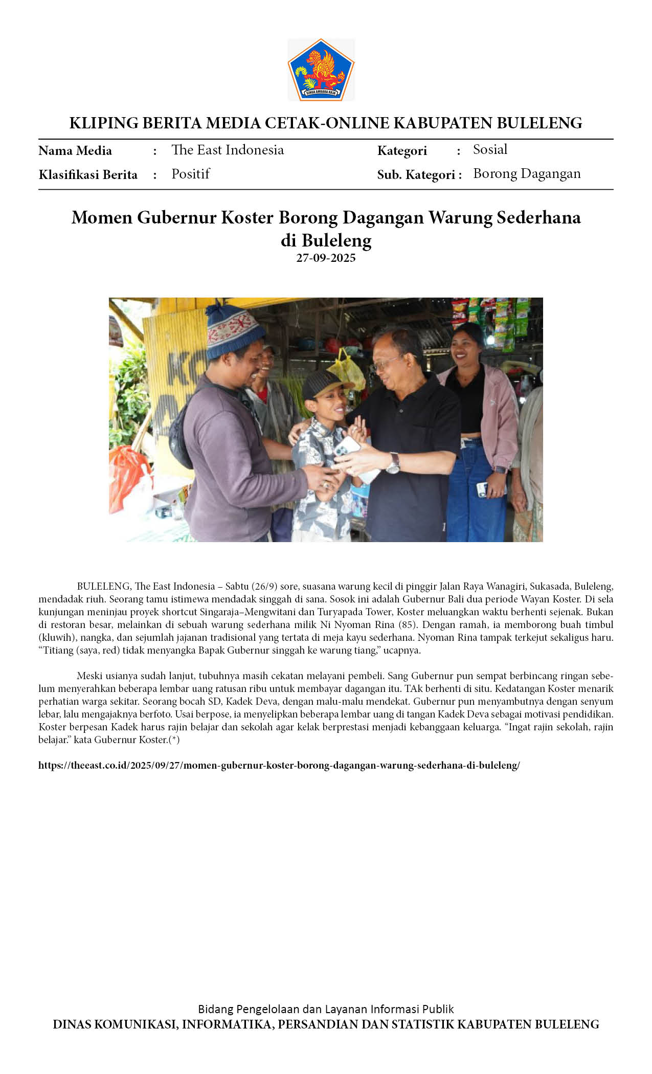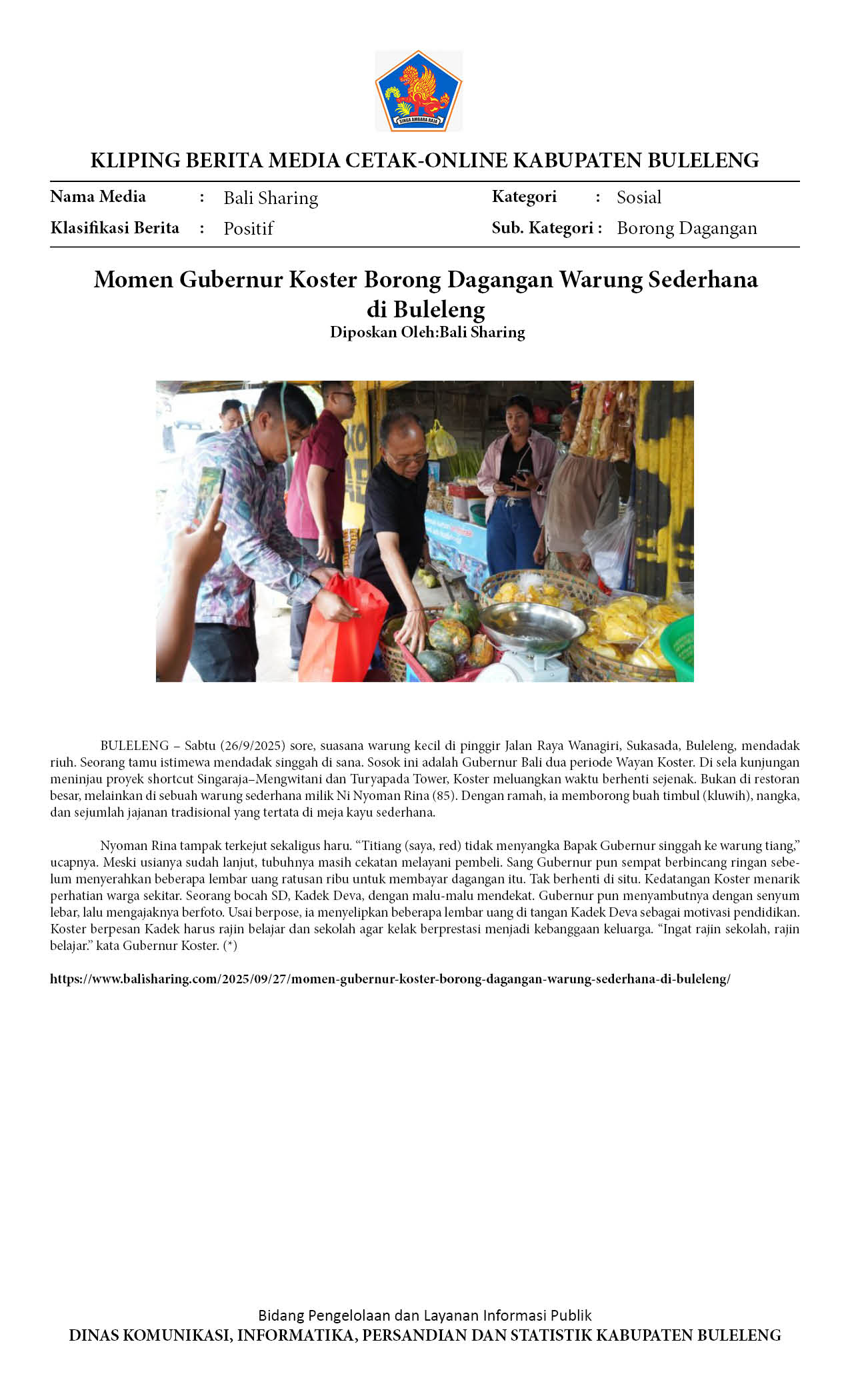 GUBERNUR KOSTER BORONG DAGANGAN WARUNG SEDERHANA MILIK DADONG NYOMAN RINA DI BULELENG