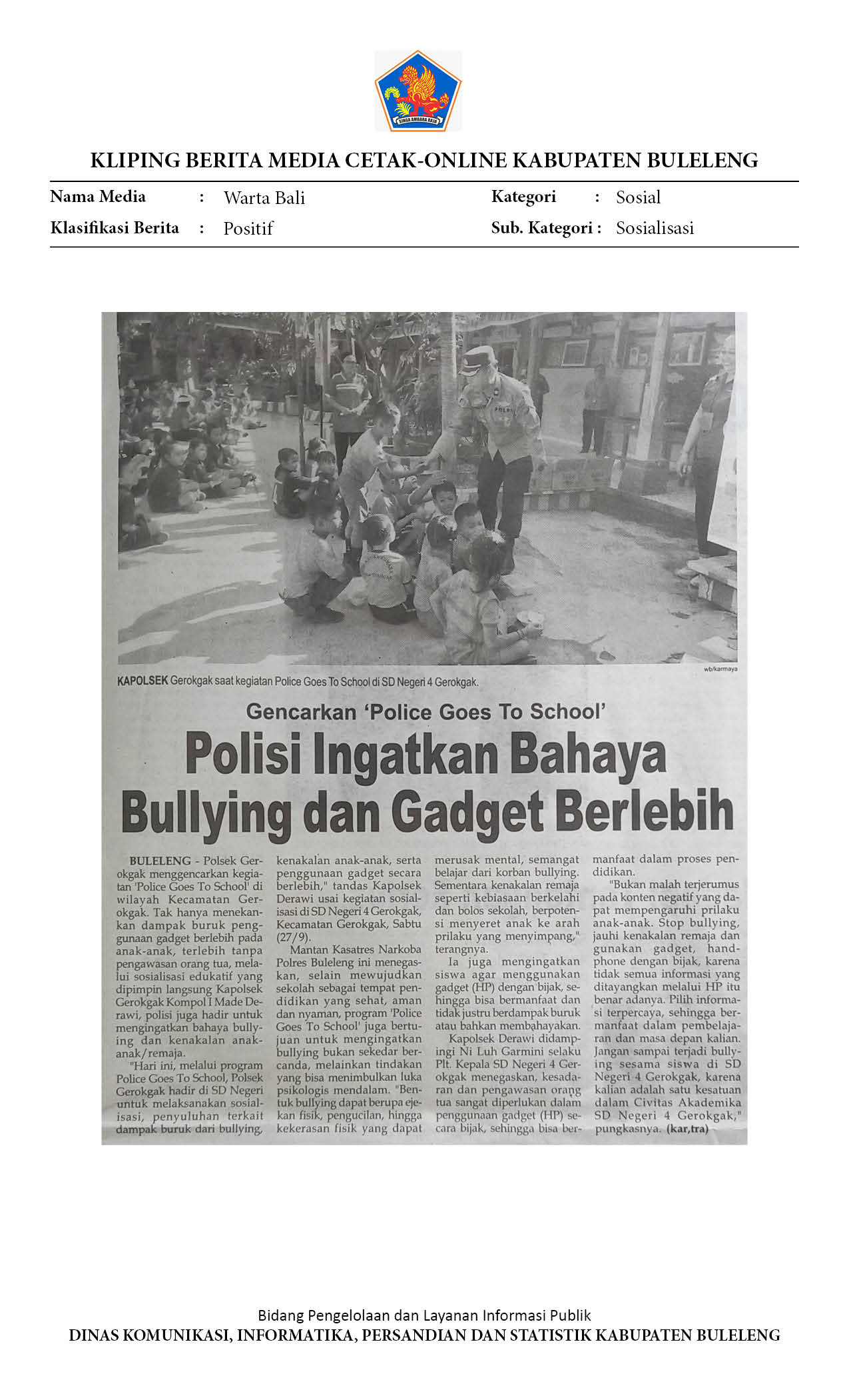 POLISI INGATKAN BAHAYA BULLYING DAN GATGET BERLEBIH