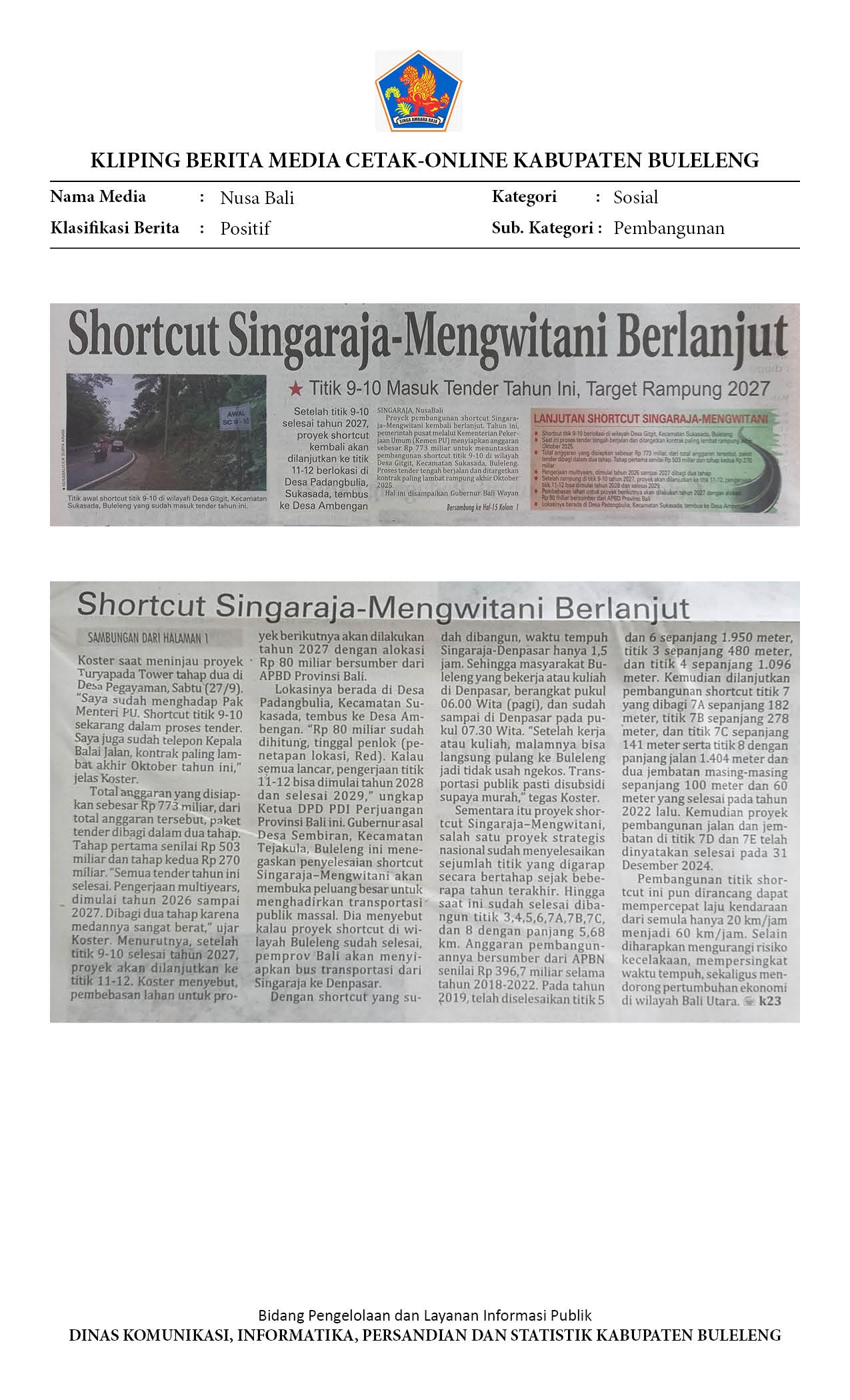 SHORTCUT SINGARAJA-MENGWITANI BERLANJUT