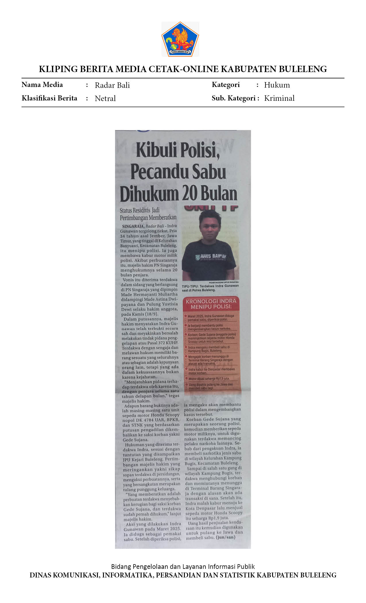 KIBULI POLISI, PECANDU SABU DIHUKUM 20 BULAN