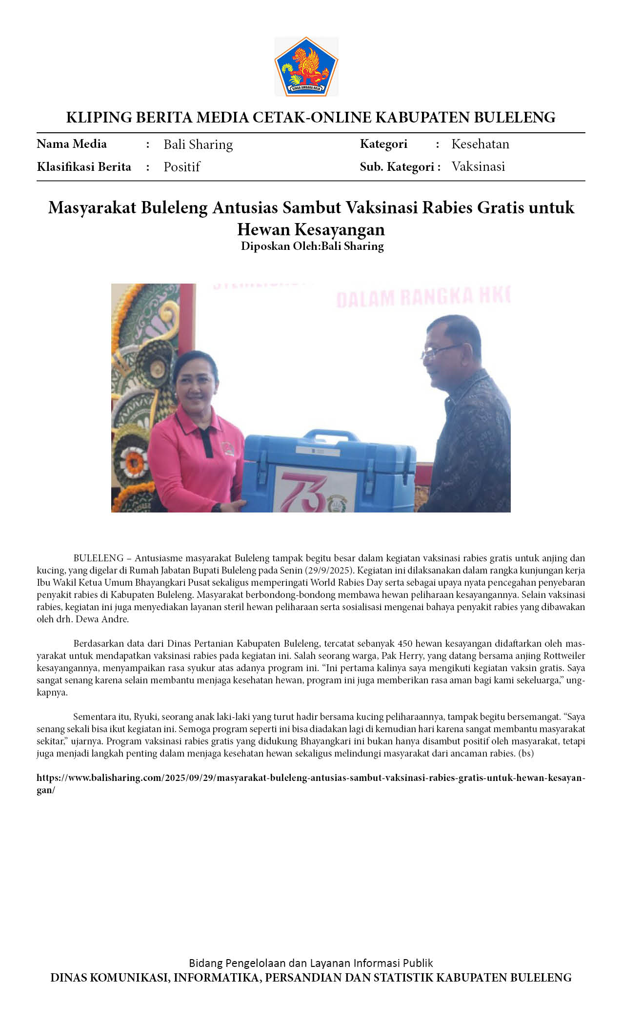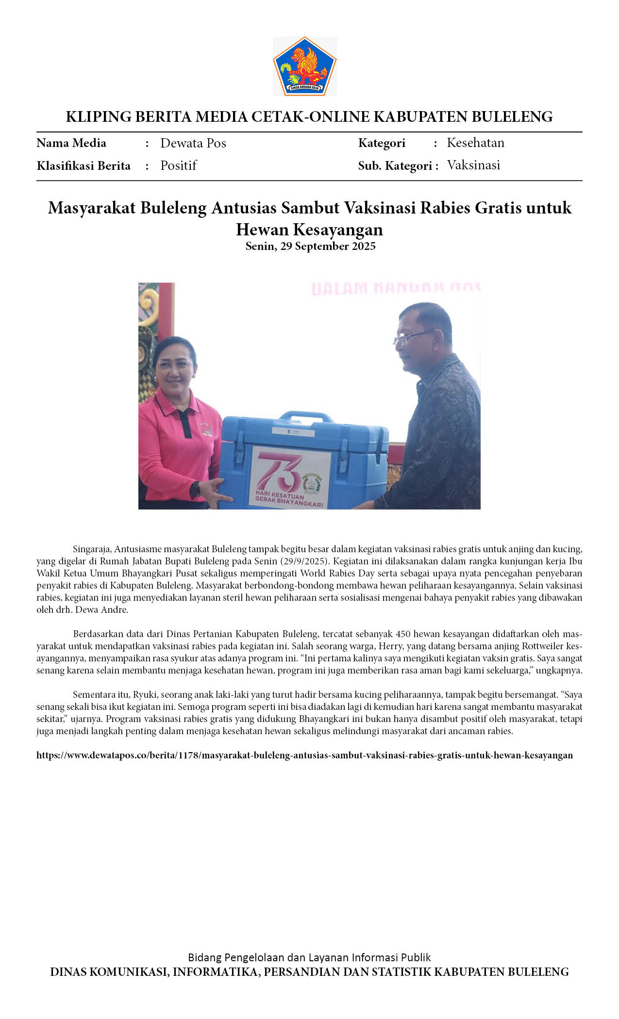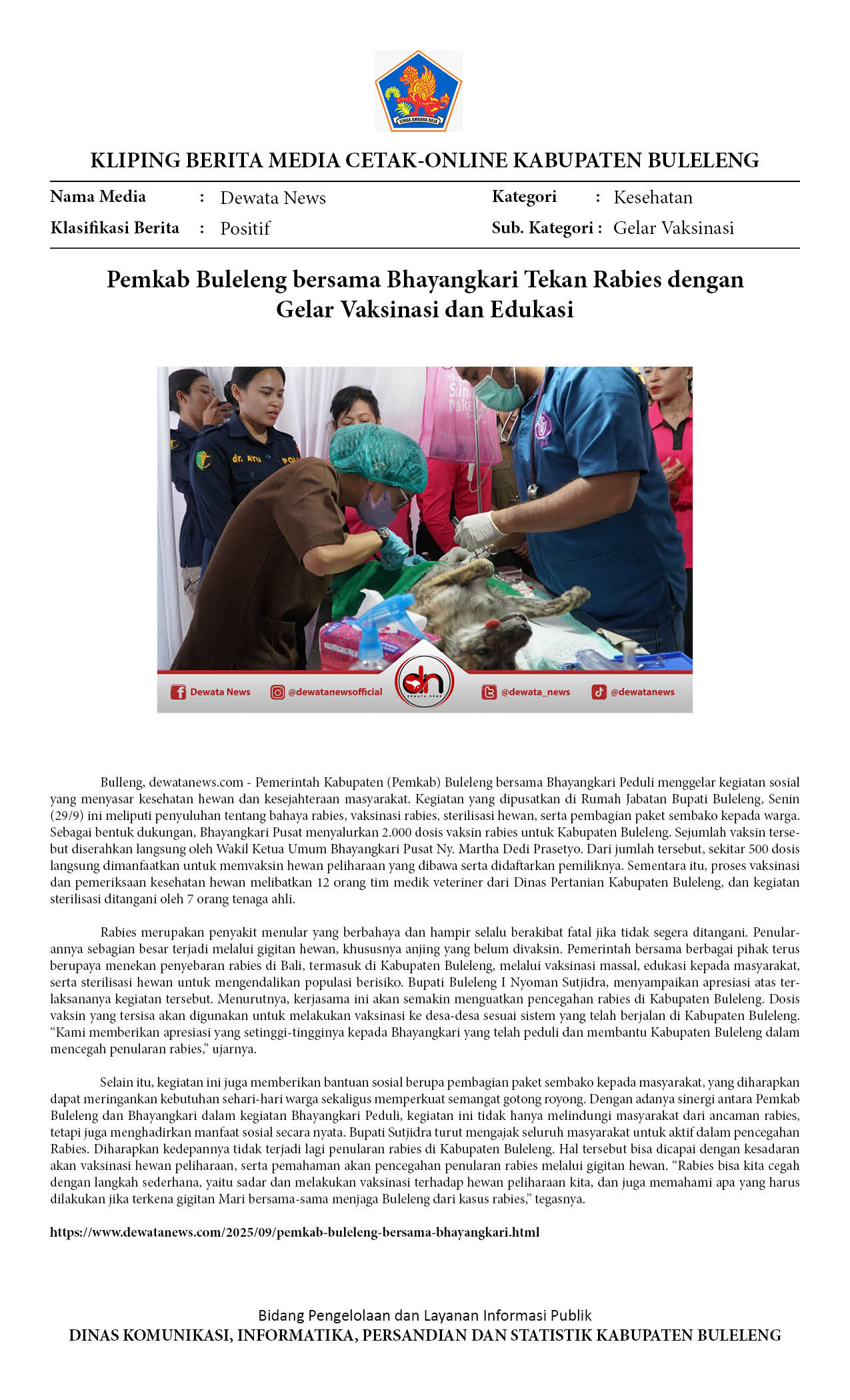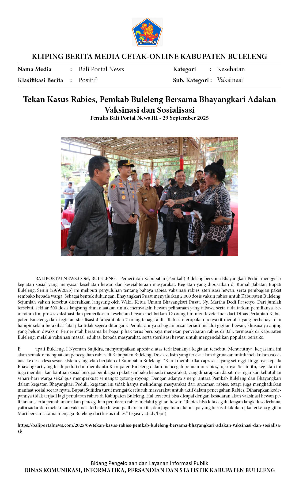 PEMKAB BULELENG BERSAMA BHAYANGKARI TEKAN RABIES DENGAN GELAR VAKSINASI DAN EDUKASI