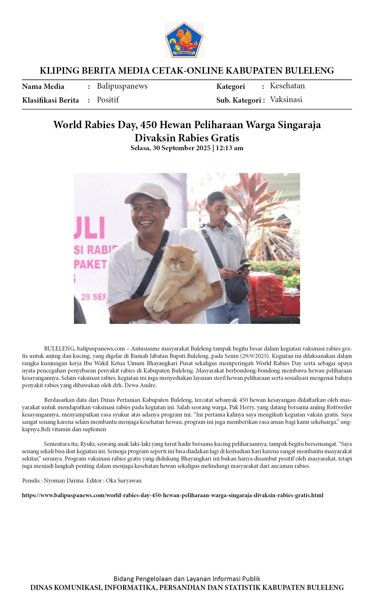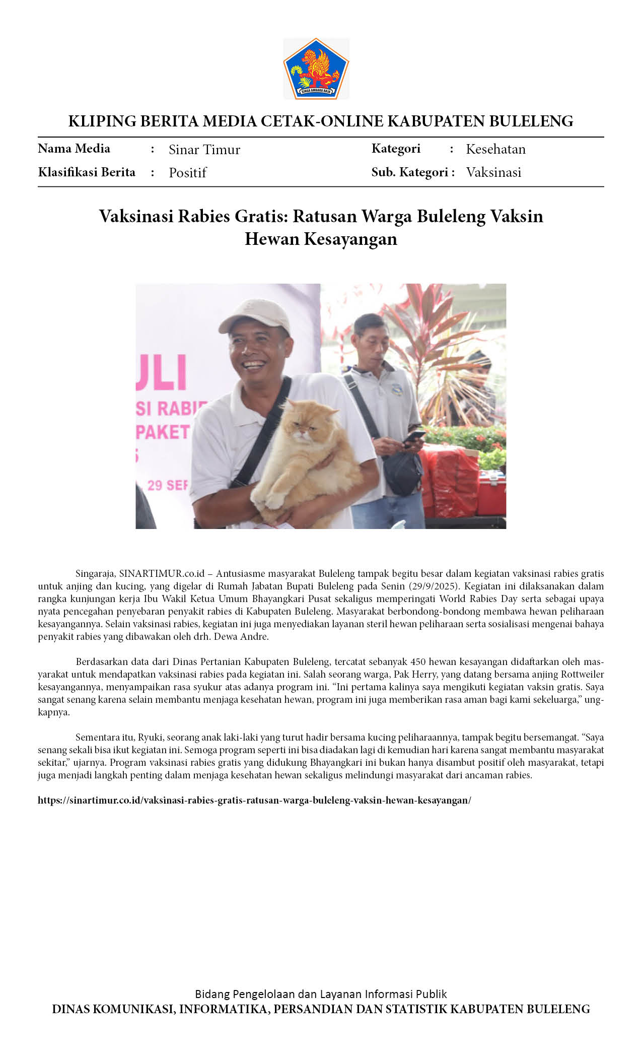 MASYARAKAT BULELENG ANTUSIAS SAMBUT VAKSINASI RABIES GRATIS UNTUK HEWAN KESAYANGAN