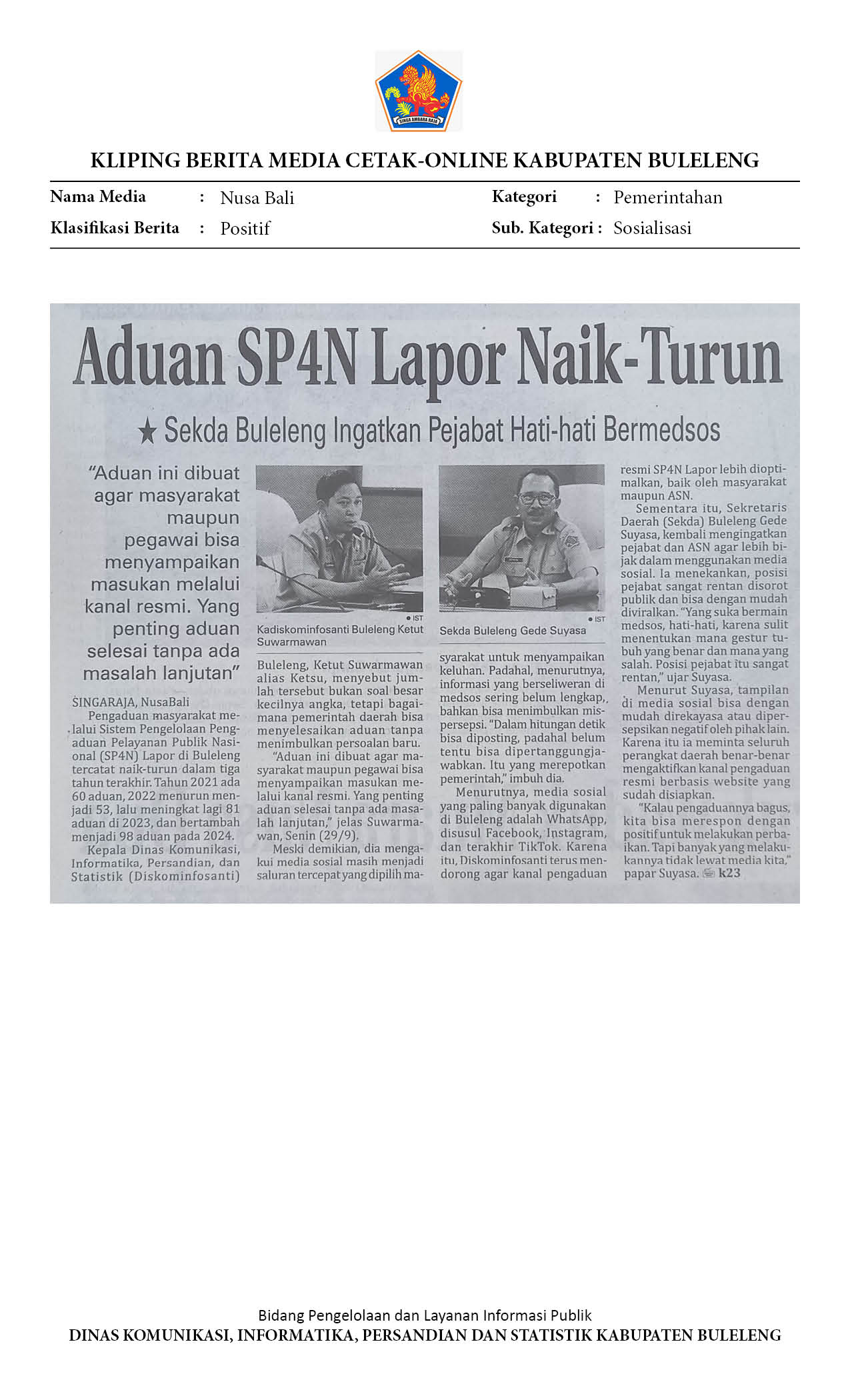 ADUAN PUBLIK MENINGKAT, SEKDA BULELENG WANTI-WANTI ASN JAGA SIKAP