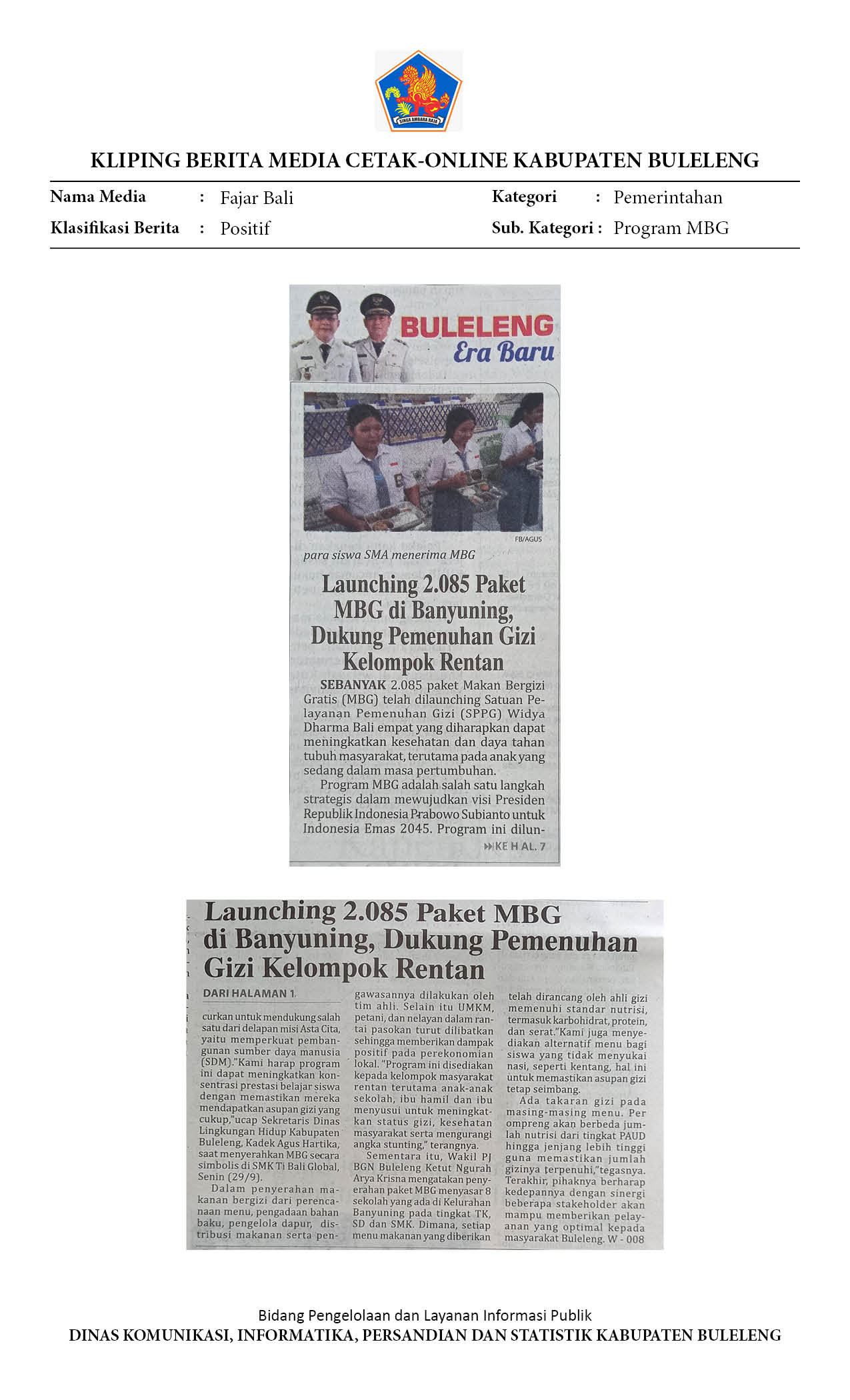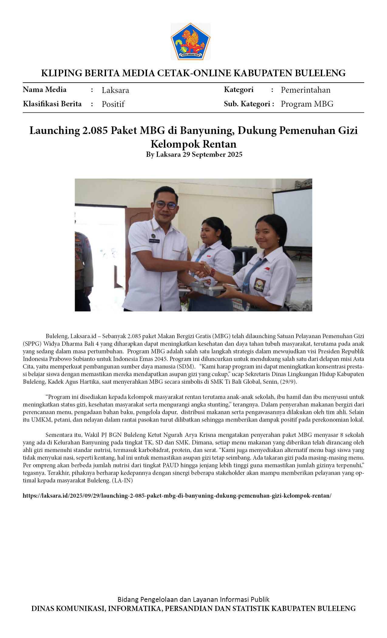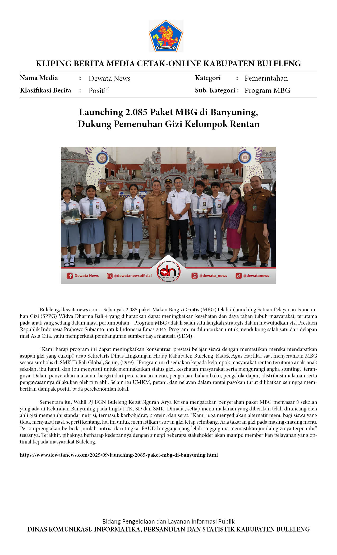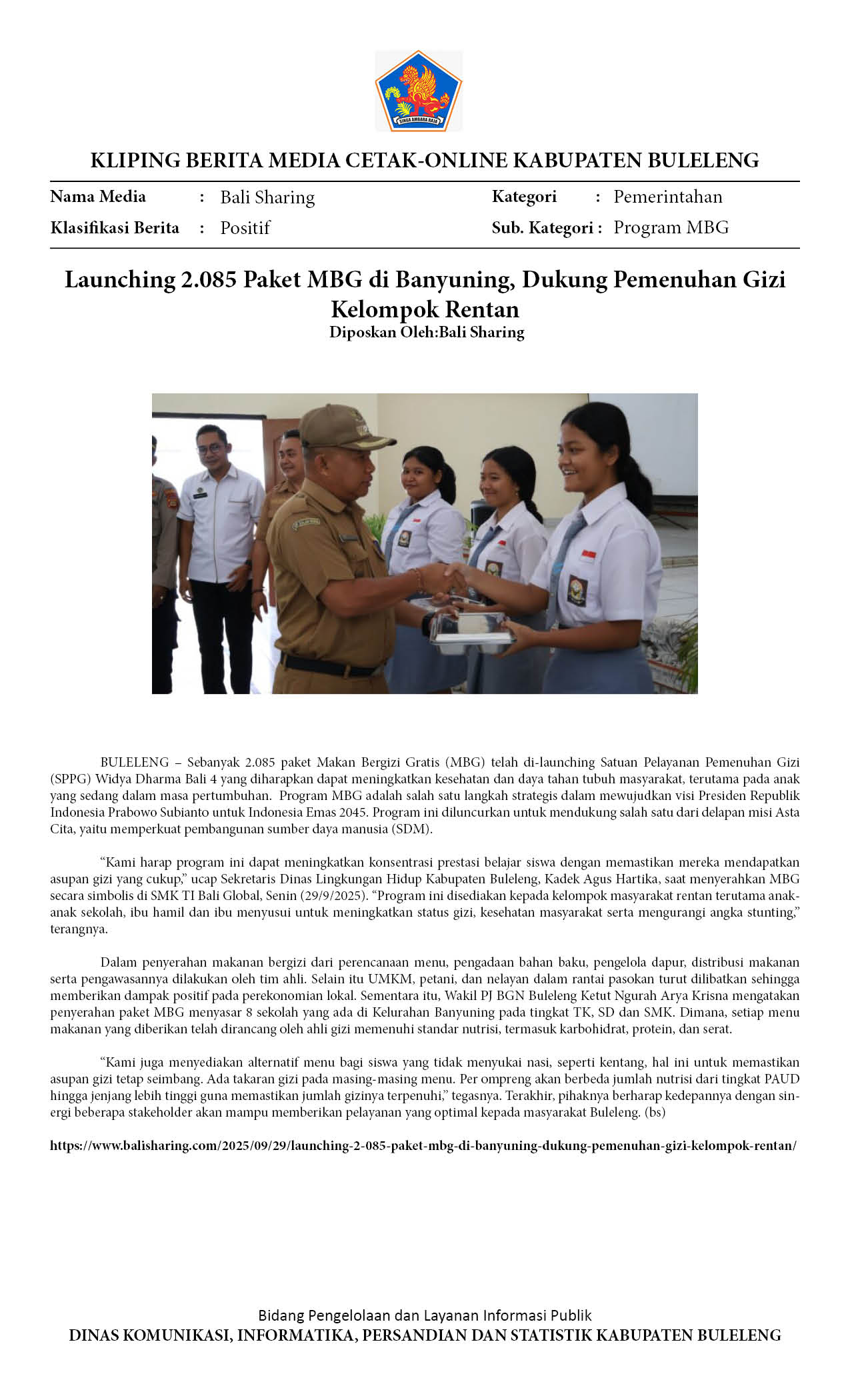 2.085 PAKET MBG RESMI DILAUNCHING DI BANYUNING, BERIKUT SASARANNYA