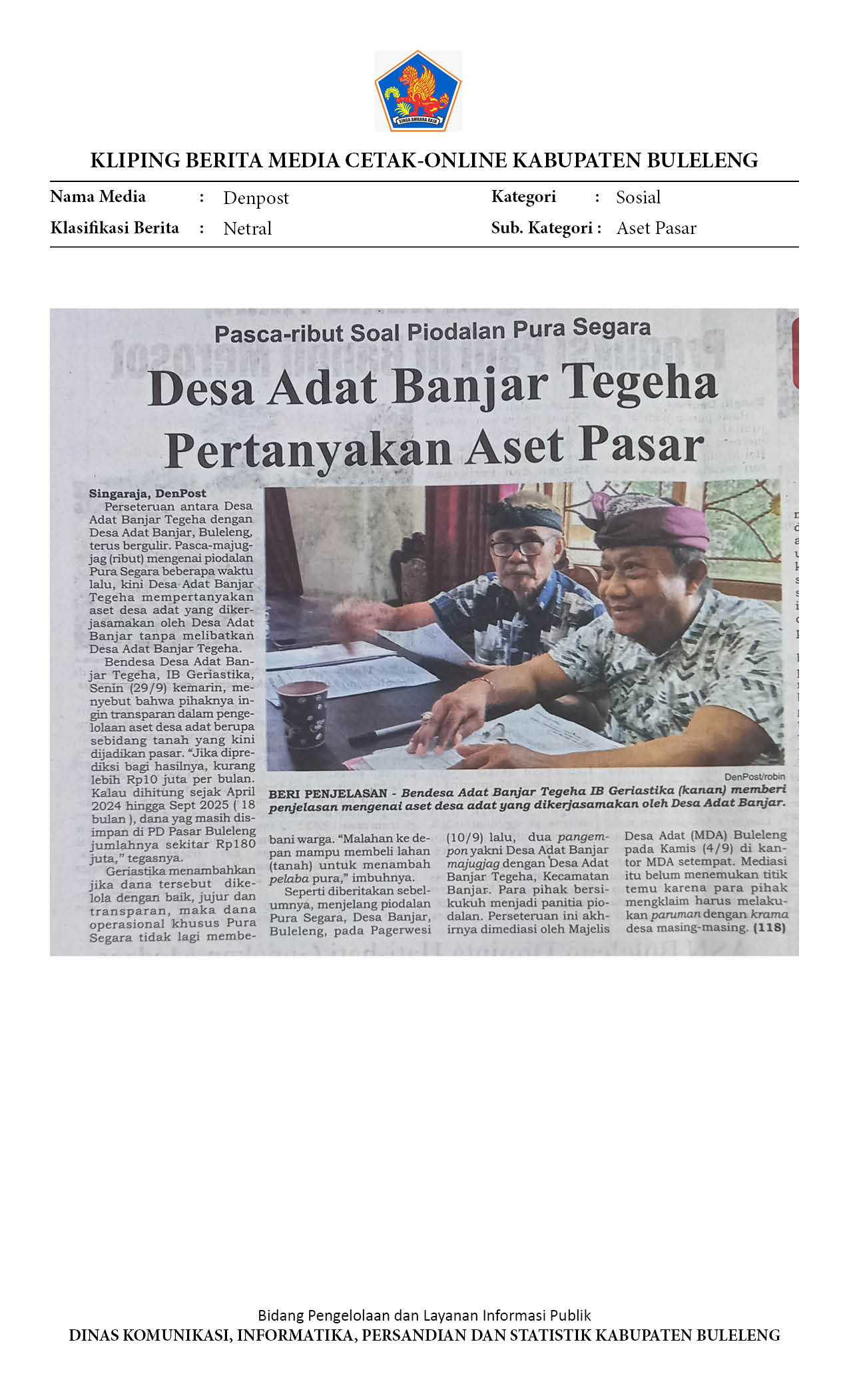 DESA ADAT BANJAR TEGEHA PERTANYAKAN ASET PASAR