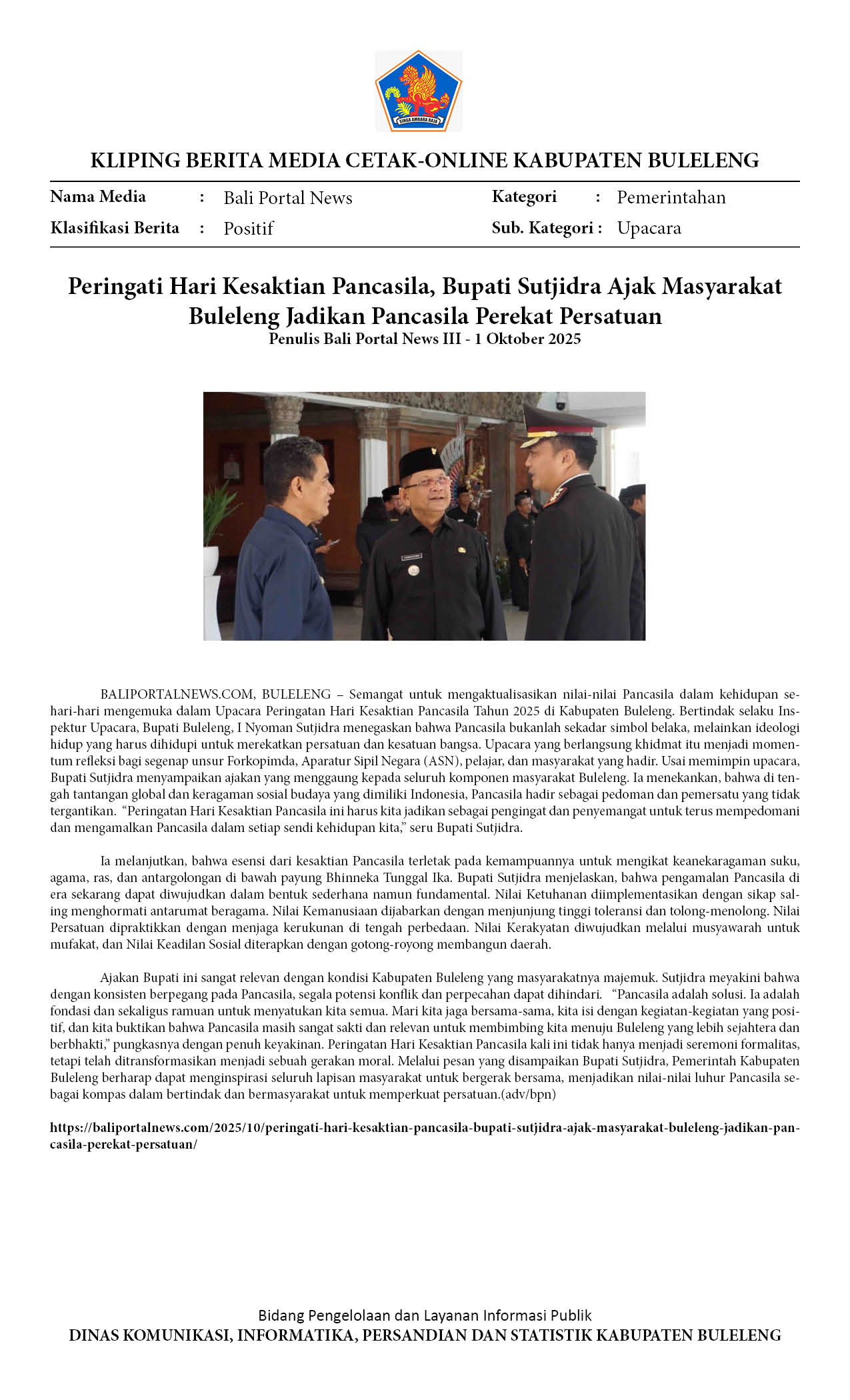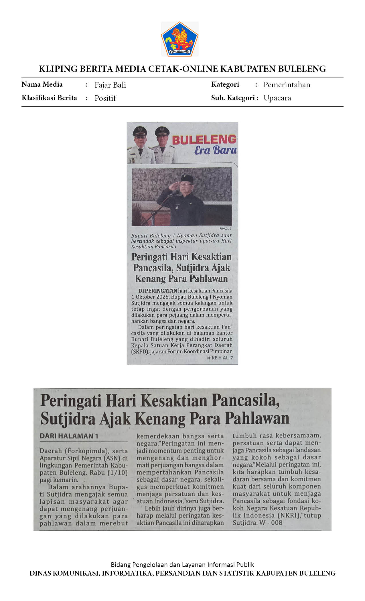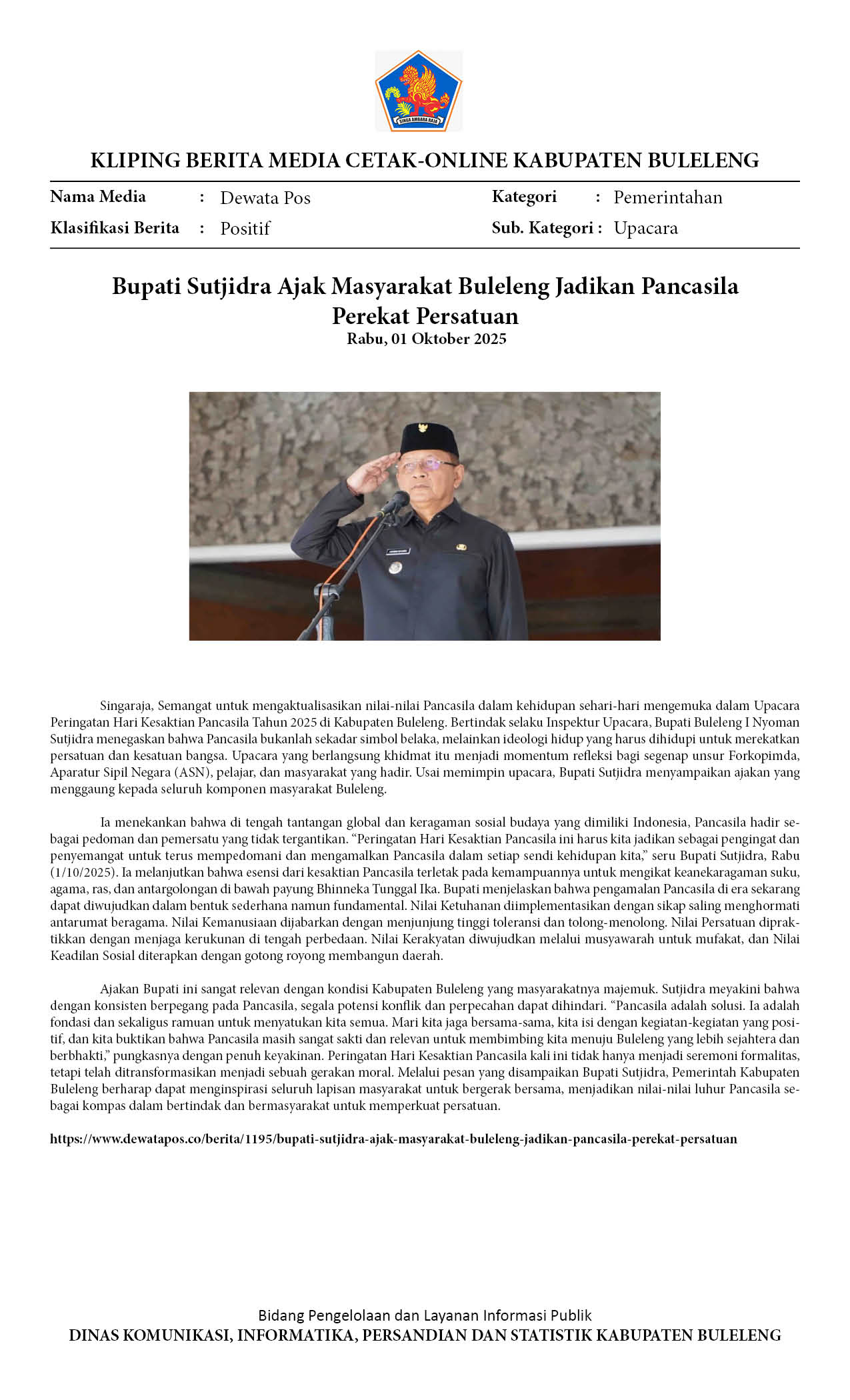Kliping Kategori Pemerintahan Edisi 02 Oktober 2025