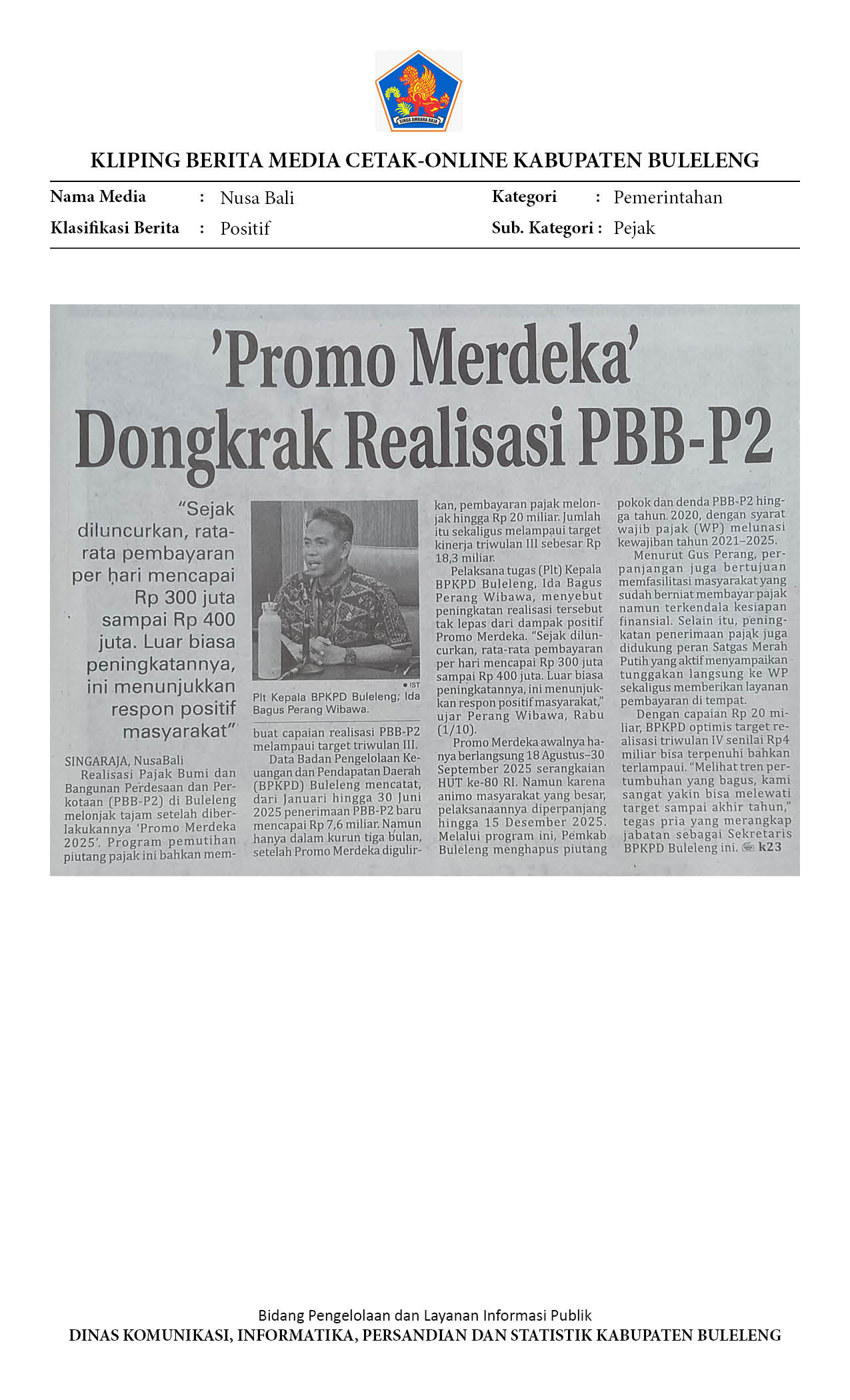 PROMO MERDEKA DONGKRAK REALISASI PBB-P2