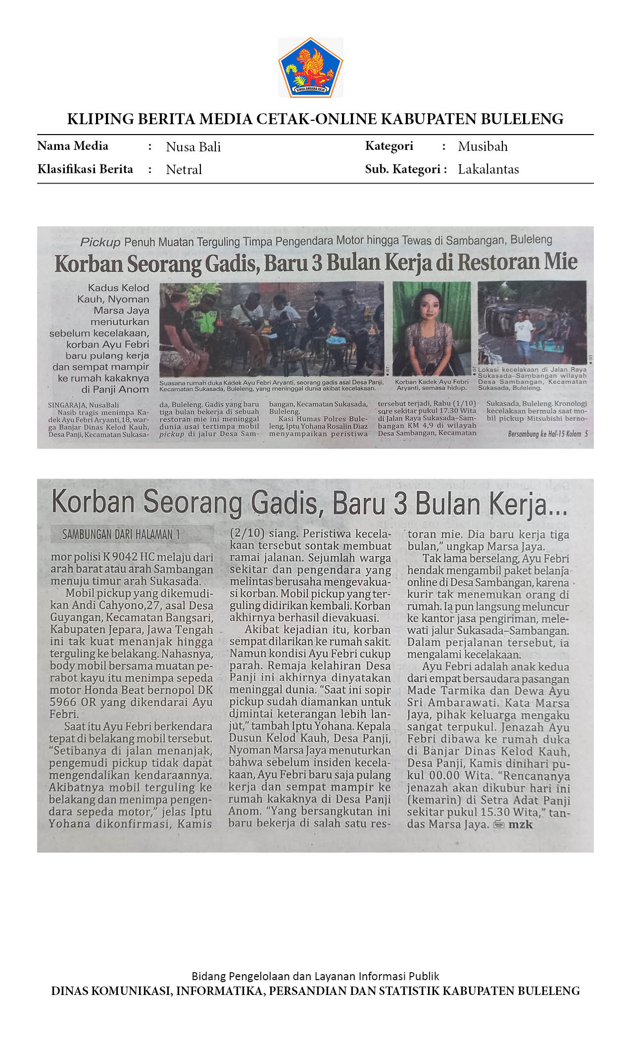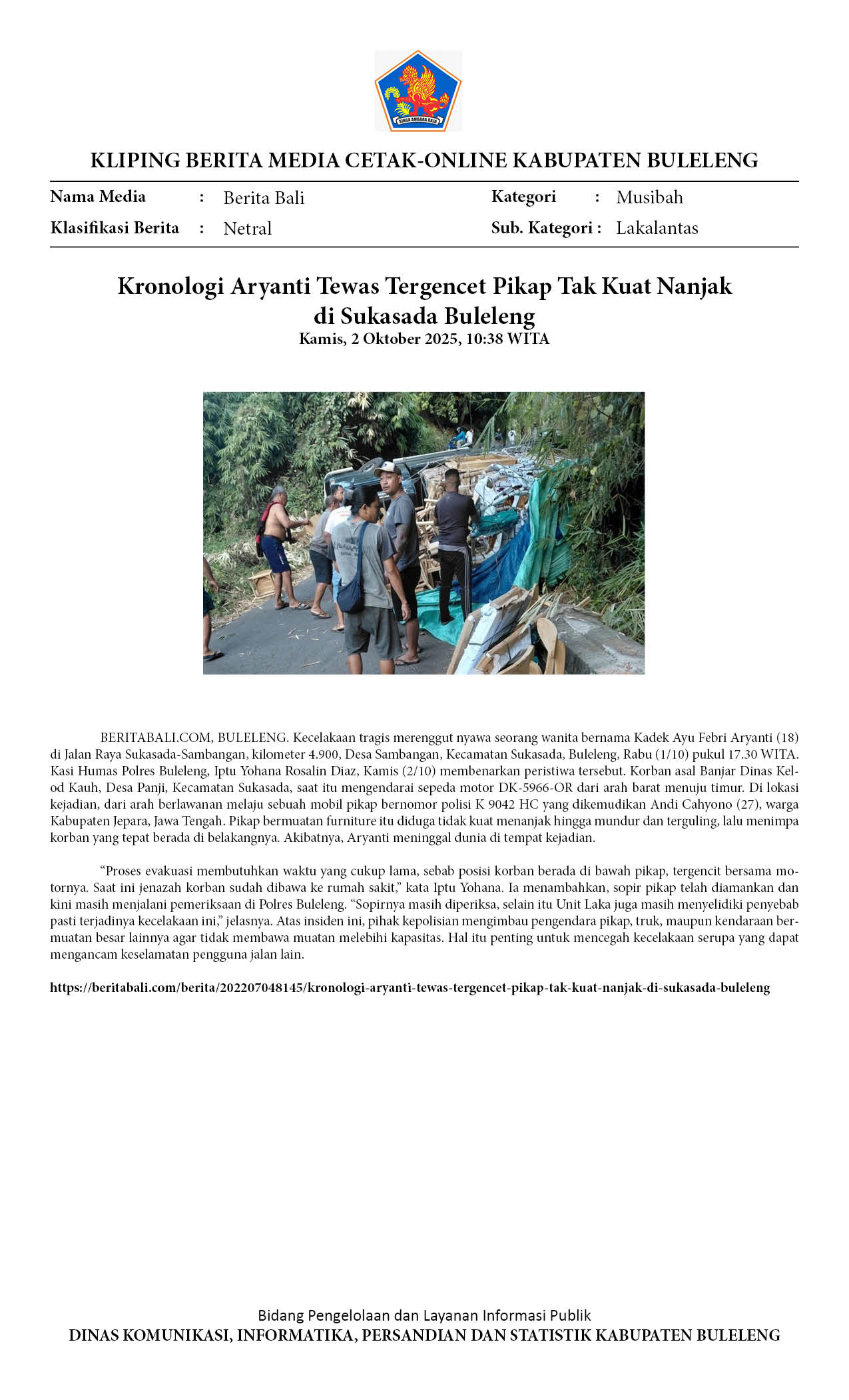 KRONOLOGI ARYANTI TEWAS TERGENCET PIKAP TAK KUAT NANJAK DI SUKASADA BULELENG