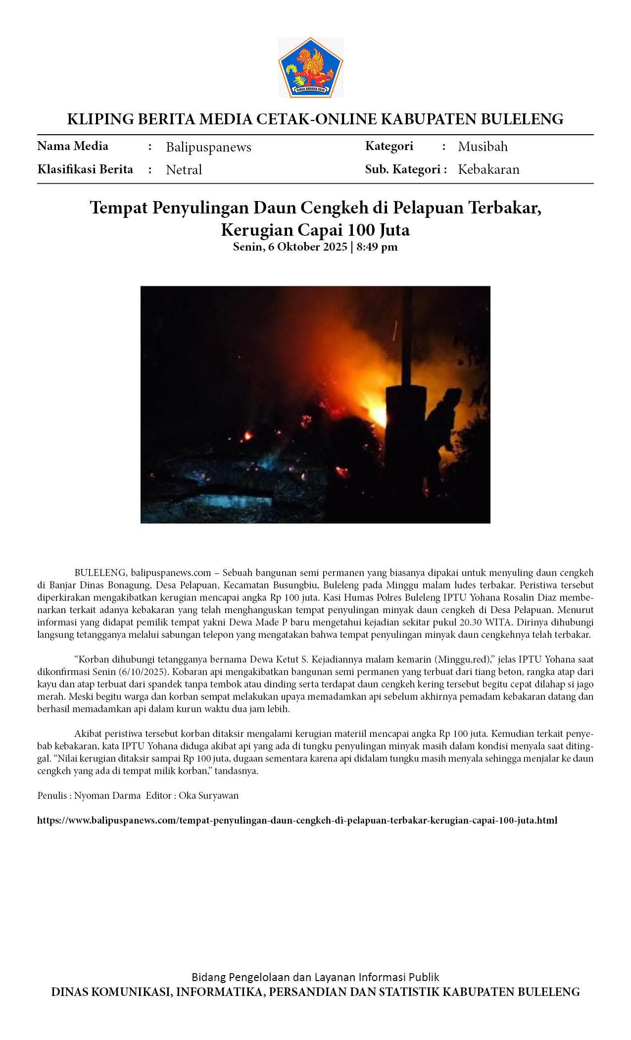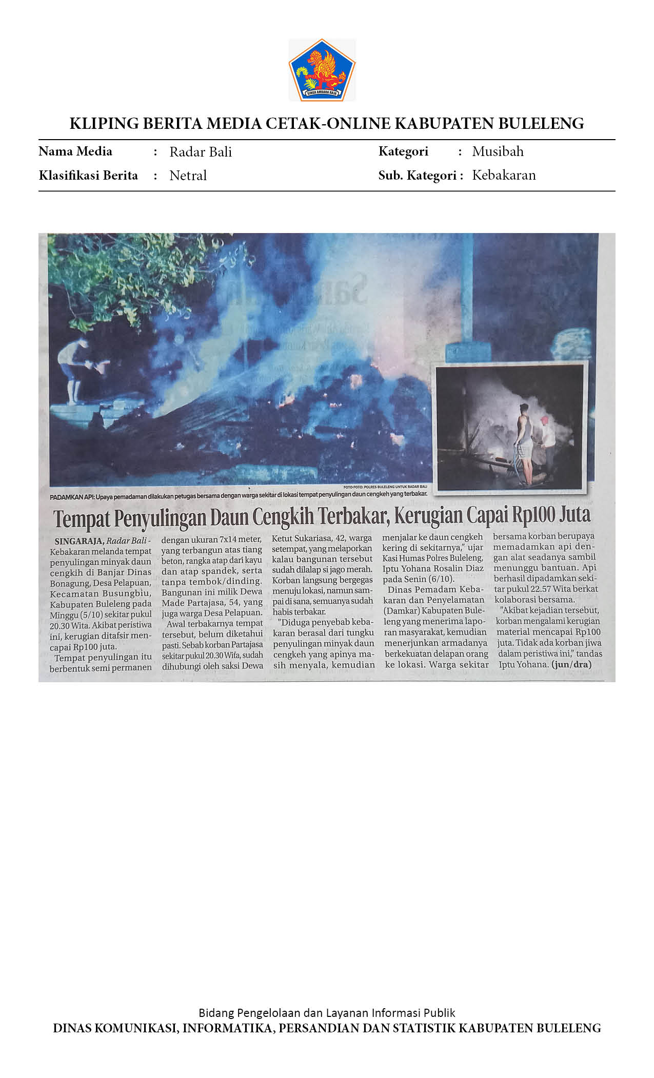 WADUH! KASUS KEBAKARAN DI BULELENG MENINGKAT TAJAM, DIDOMINASI AKIBAT KELALAIAN