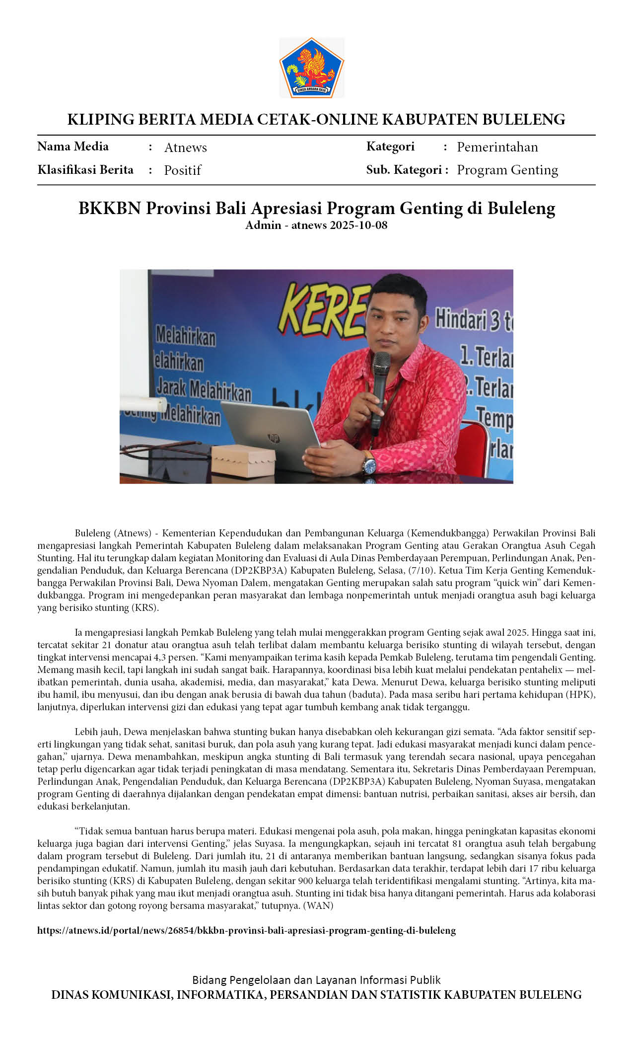 BKKBN PROVINSI BALI APRESIASI PROGRAM GENTING DI BULELENG
