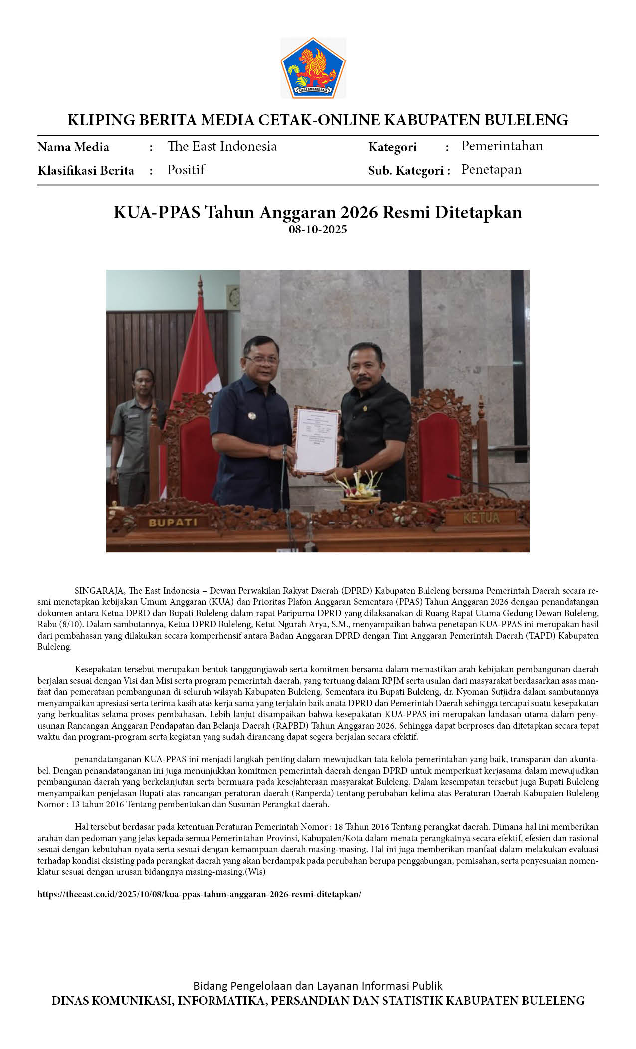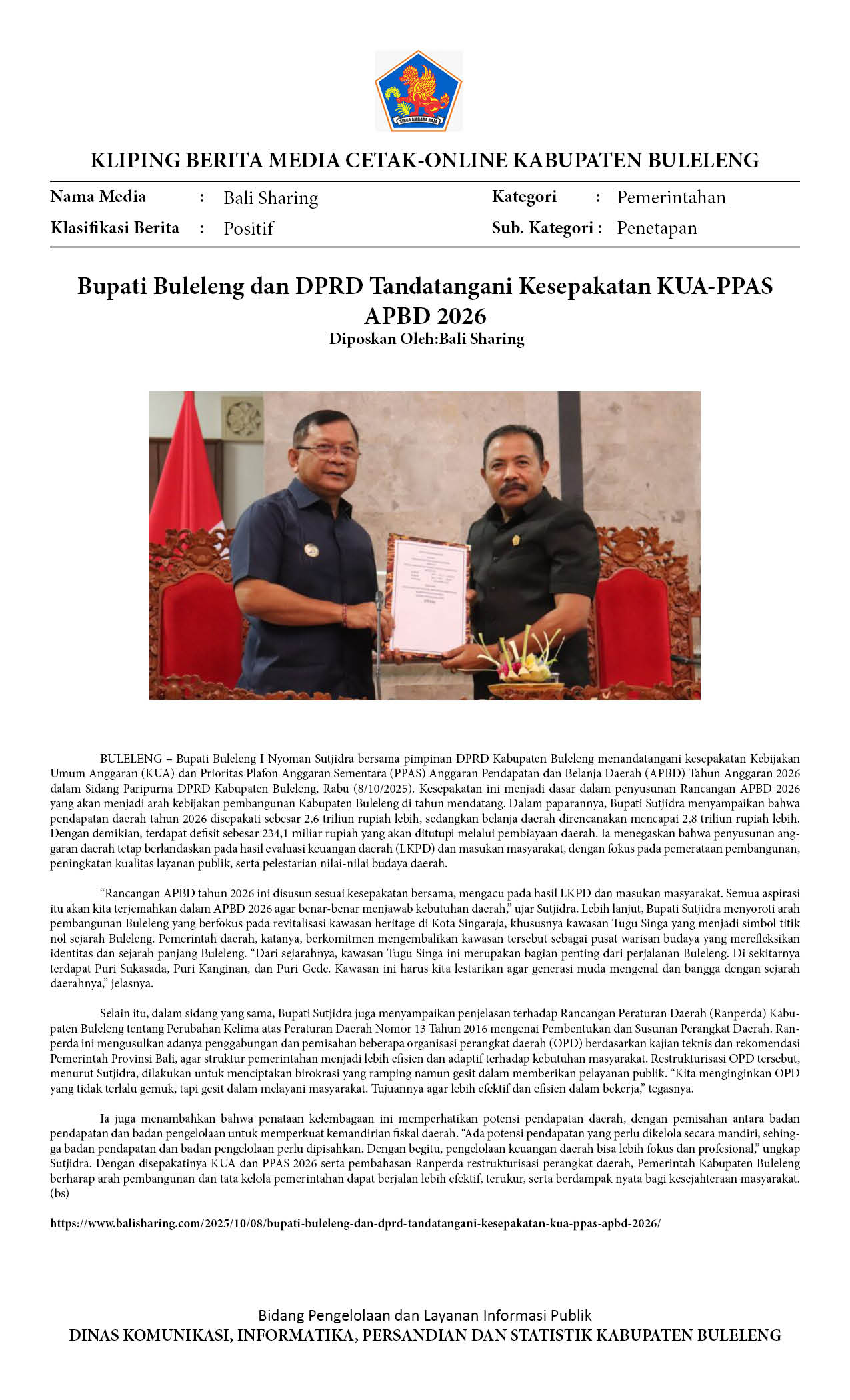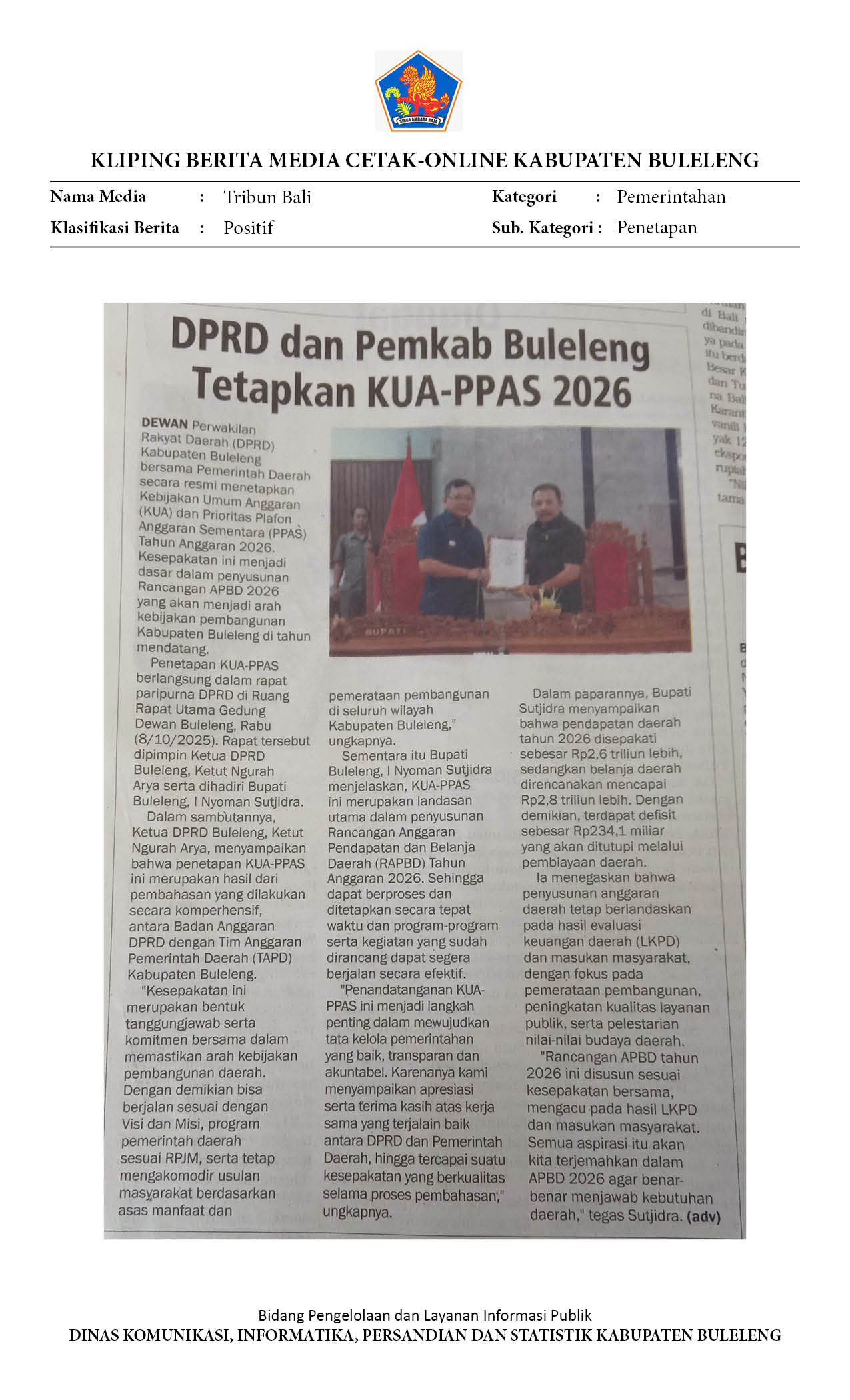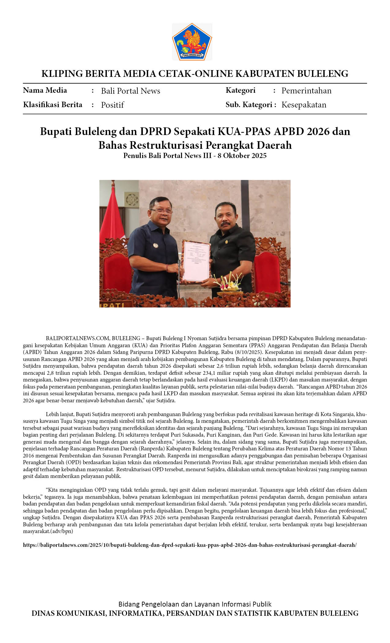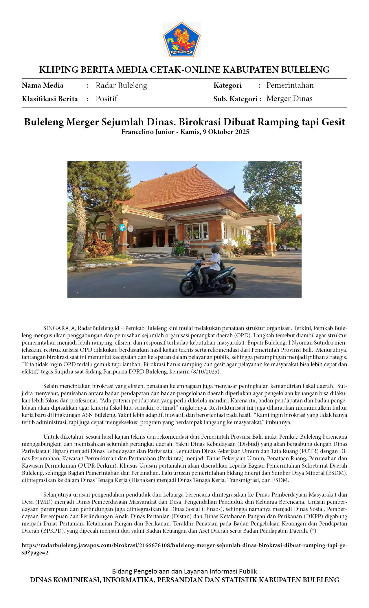 Kliping Kategori Pemerintahan Edisi 09 Oktober 2025