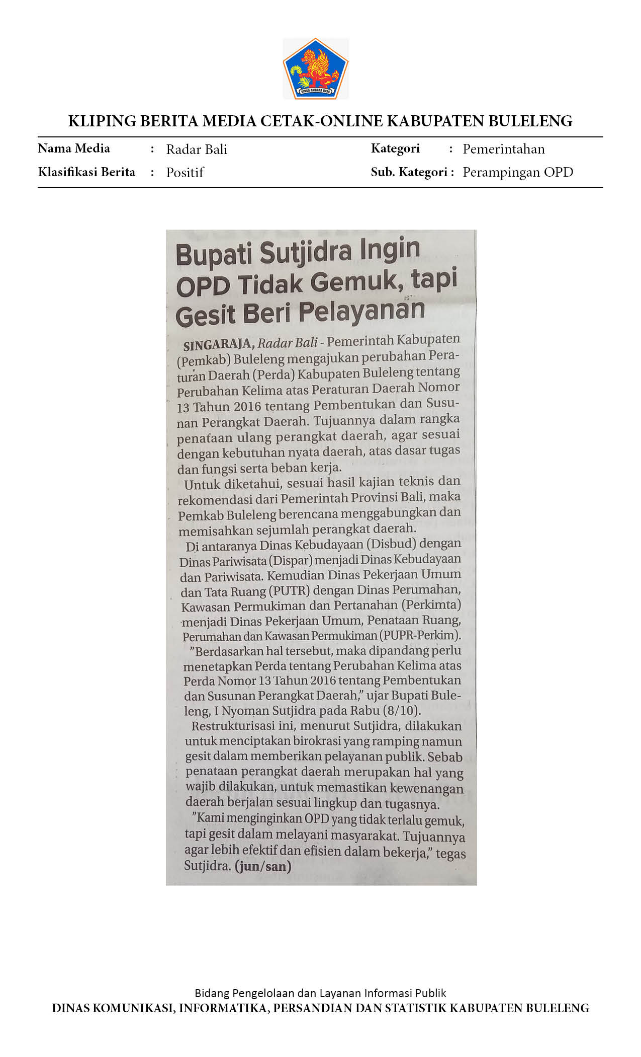 BULELENG MERGER SEJUMLAH DINAS. BIROKRASI DIBUAT RAMPING TAPI GESIT