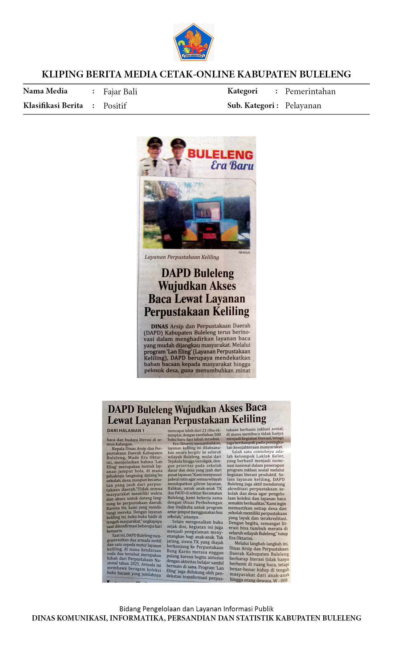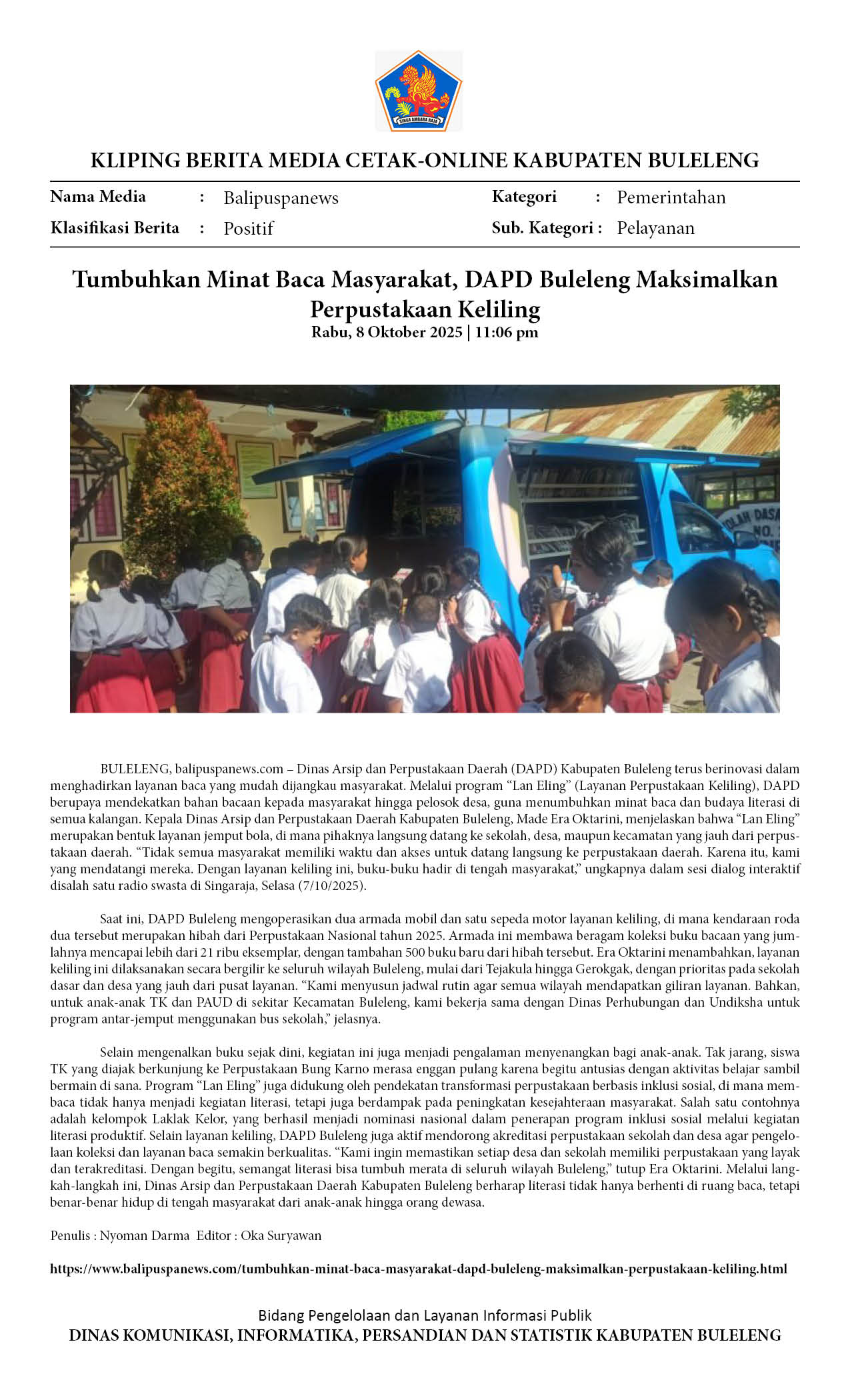 DAPD BULELENG WUJUDKAN AKSES BACA LEWAT LAYANAN PERPUSTAKAAN KELILING